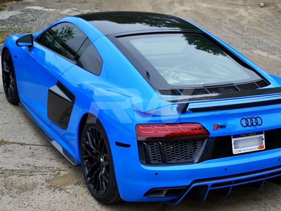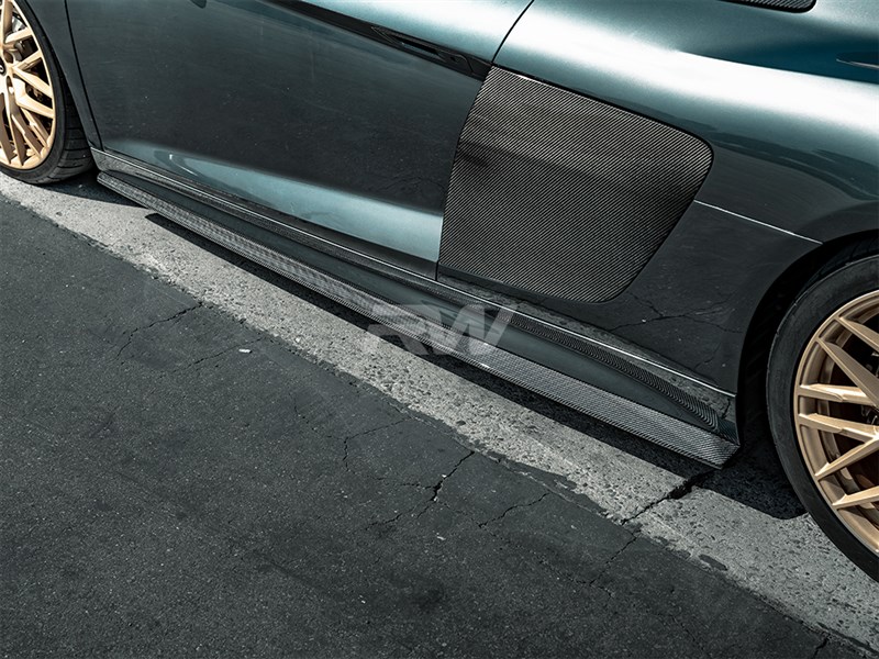 Enhance the side profile of your Audi R8 with these carbon fiber Side Skirt Extensions from RW Carbon. Designed to seamlessly integrate with the factory rocker panels, these extensions create a lower, more aggressive stance. Constructed from premium carbon fiber with a high-gloss clear coat finish.