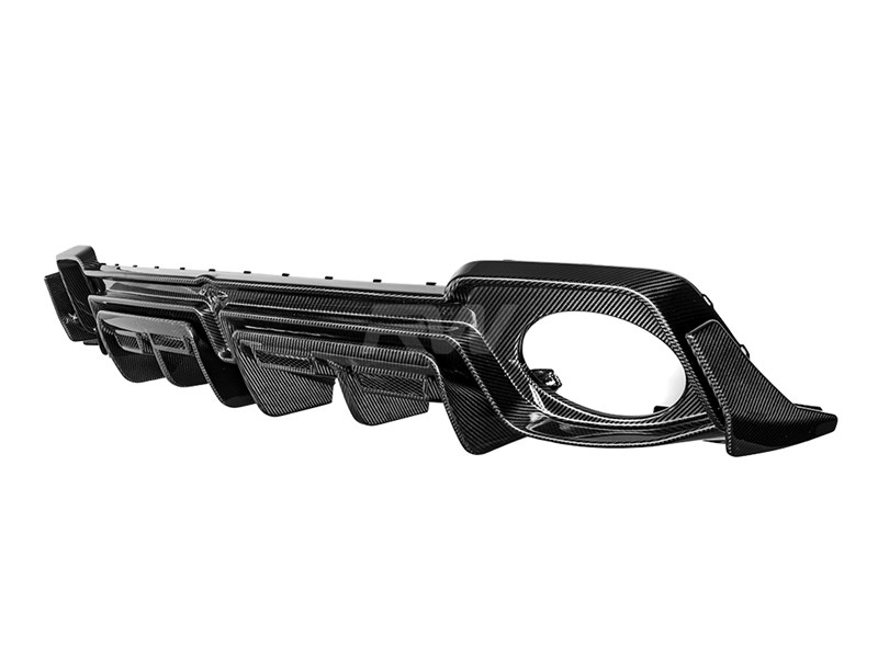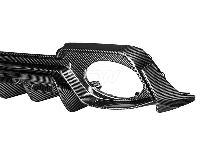 Complete the rear-end transformation of your 2019+ Audi R8 with this carbon fiber Rear Diffuser from RW Carbon. This diffuser integrates seamlessly with the factory rear bumper, adding a purposeful, performance-oriented appearance. Crafted from lightweight carbon fiber with a UV-protective clear coat for enduring quality.