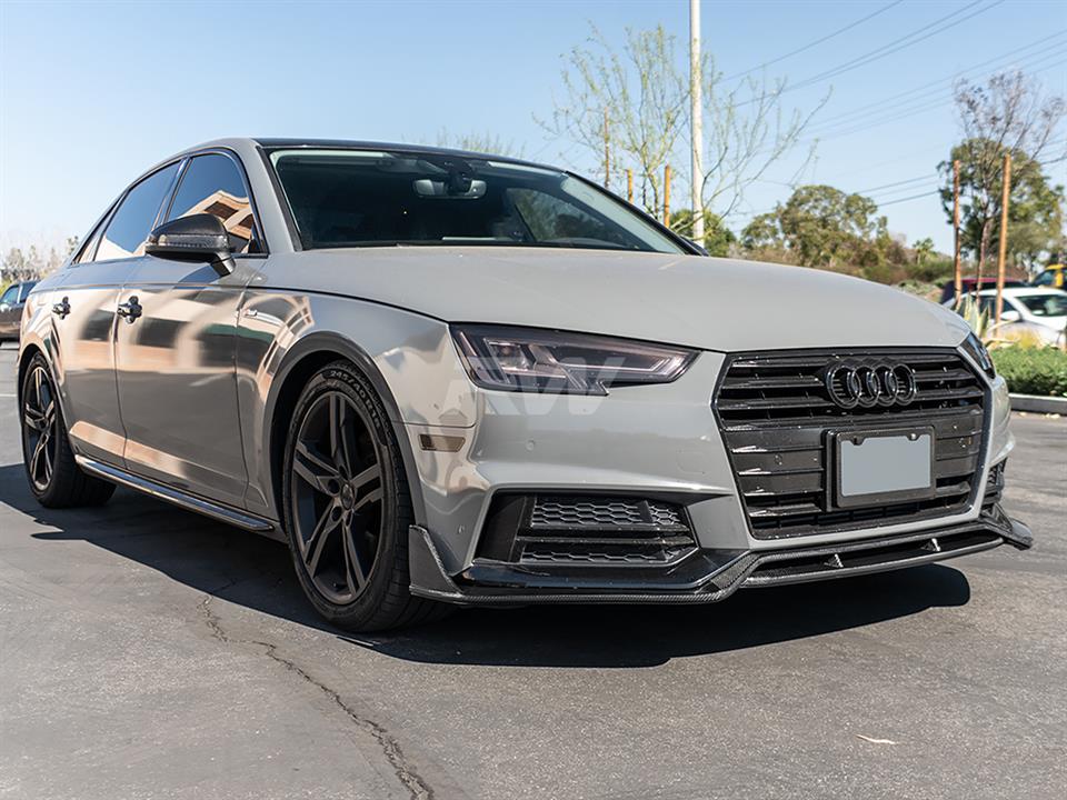 Upgrade the front-end presence of your Audi S4 with this carbon fiber Front Lip from RW Carbon. Designed for a precise OEM-like fitment, this lip adds an aggressive yet refined look to your vehicle's front fascia. Constructed from high-quality carbon fiber with a UV-resistant clear coat, it delivers both visual impact and lasting durability.
