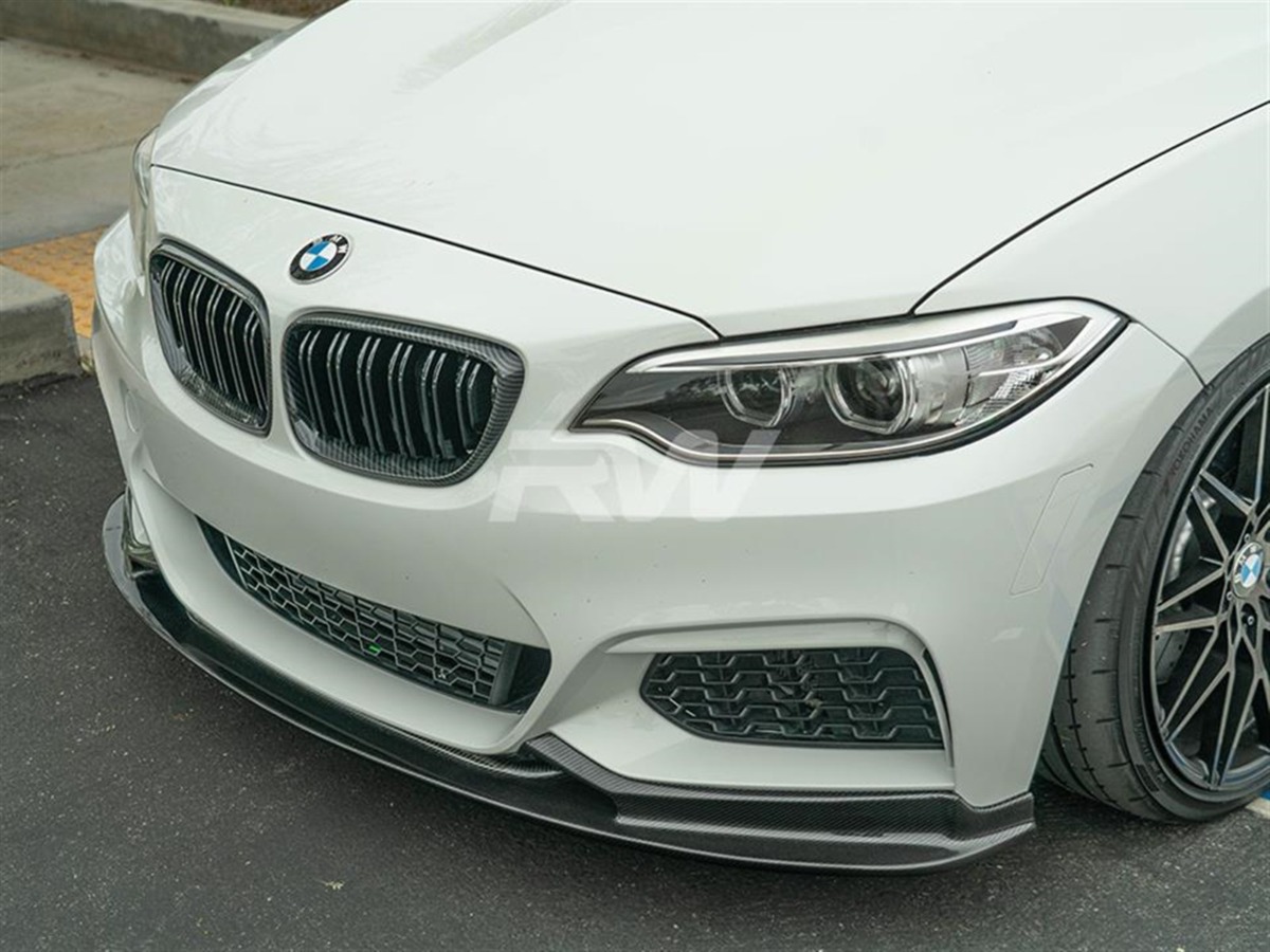 Upgrade the front-end presence of your BMW F22 with this carbon fiber Front Lip from RW Carbon. Designed for a precise OEM-like fitment, this lip adds an aggressive yet refined look to your vehicle's front fascia. Constructed from high-quality carbon fiber with a UV-resistant clear coat, it delivers both visual impact and lasting durability.