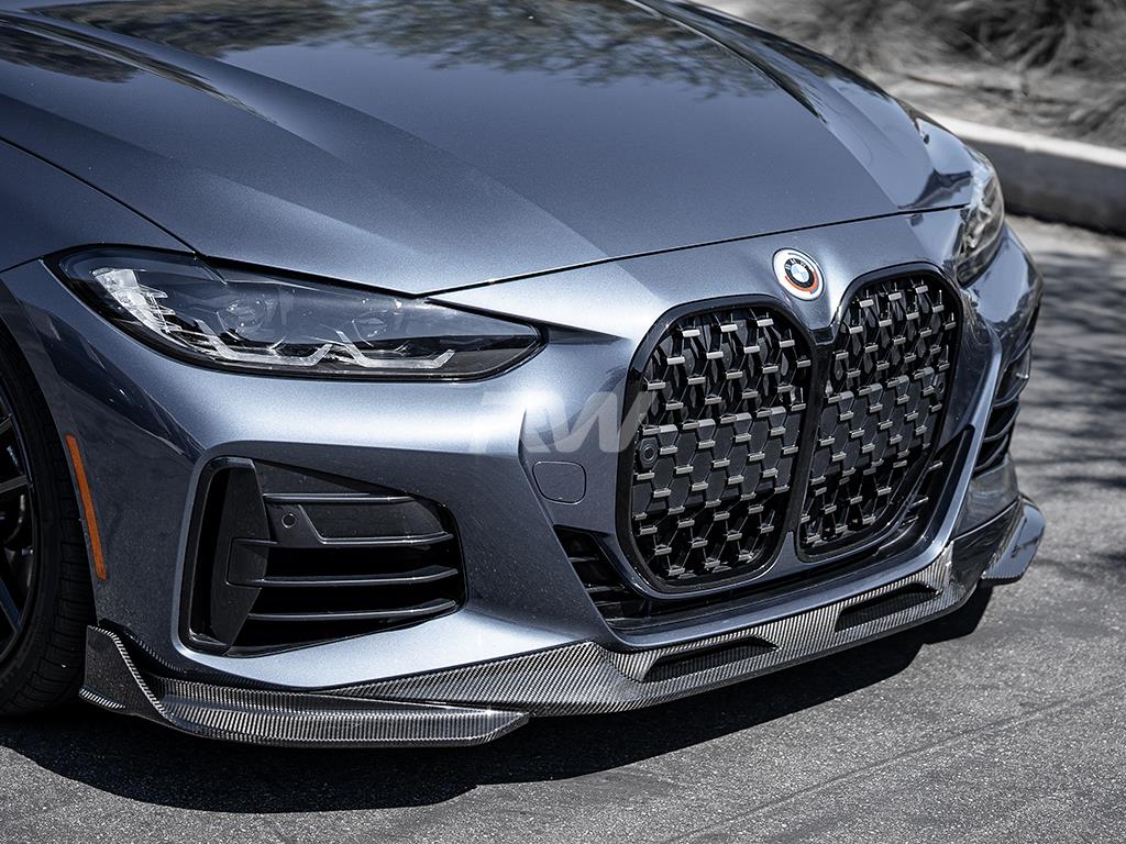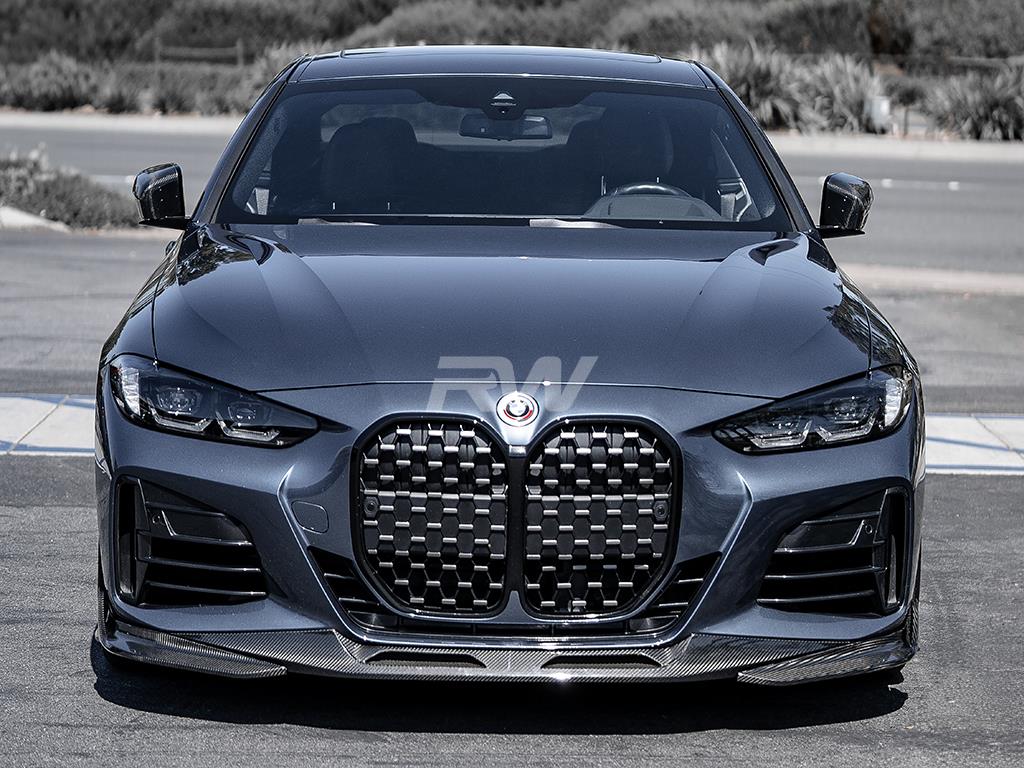 Upgrade the front-end presence of your BMW G22 with this carbon fiber Front Lip from RW Carbon. Designed for a precise OEM-like fitment, this lip adds an aggressive yet refined look to your vehicle's front fascia. Constructed from high-quality carbon fiber with a UV-resistant clear coat, it delivers both visual impact and lasting durability.