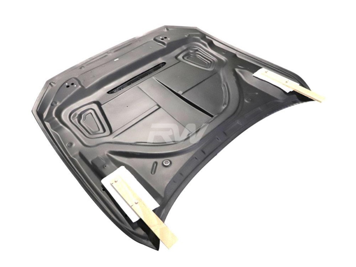 - Significant weight reduction vs. factory hood