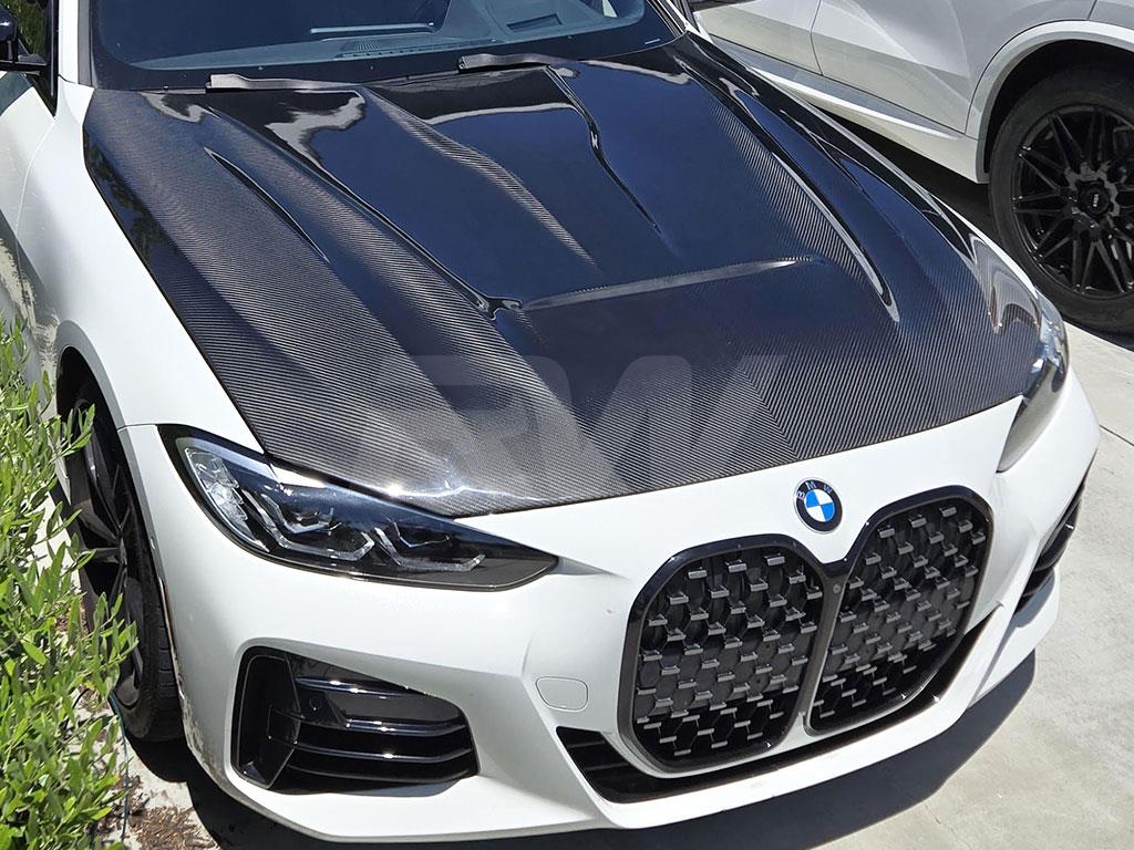 Make a bold statement with this carbon fiber Hood for your BMW G22 from RW Carbon. This hood dramatically reduces weight compared to the factory unit while adding unmistakable visual presence. Handcrafted from premium carbon fiber with integrated mounting points for hassle-free installation.
