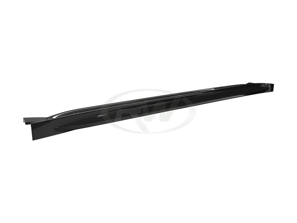 Enhance the side profile of your BMW G82 with these carbon fiber Side Skirt Extensions from RW Carbon. Designed to seamlessly integrate with the factory rocker panels, these extensions create a lower, more aggressive stance. Constructed from premium carbon fiber with a high-gloss clear coat finish.
