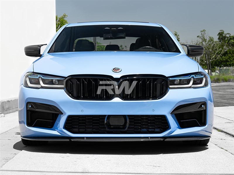 Upgrade the front-end presence of your BMW F90 with this carbon fiber Front Lip from RW Carbon. Designed for a precise OEM-like fitment, this lip adds an aggressive yet refined look to your vehicle's front fascia. Constructed from high-quality carbon fiber with a UV-resistant clear coat, it delivers both visual impact and lasting durability.
