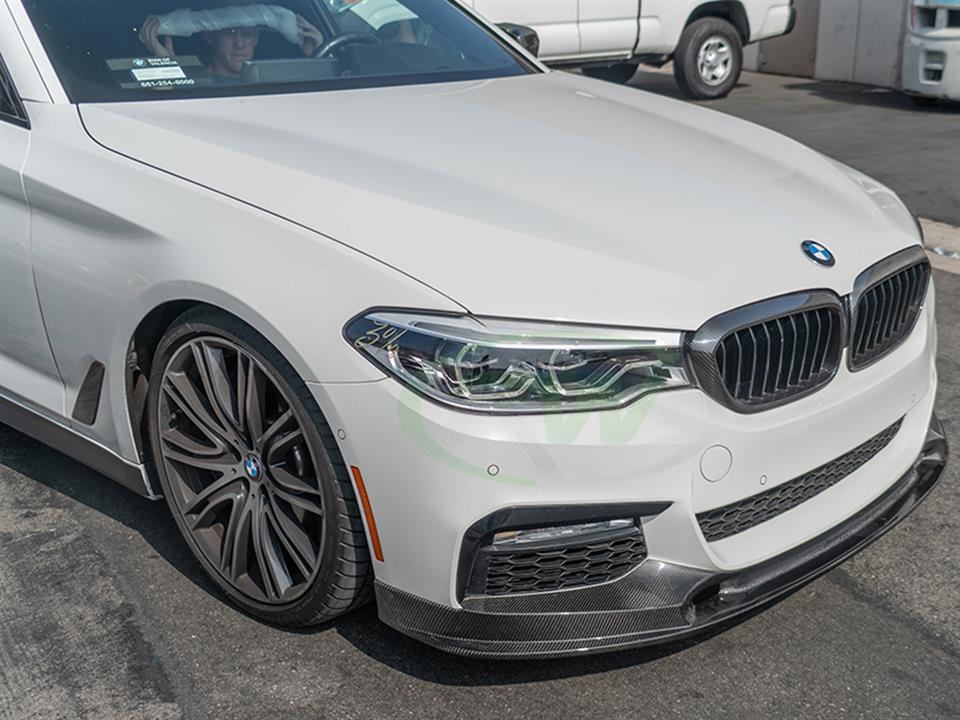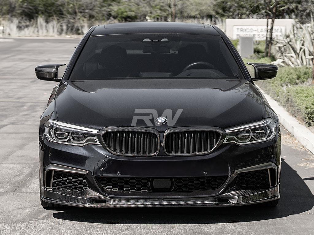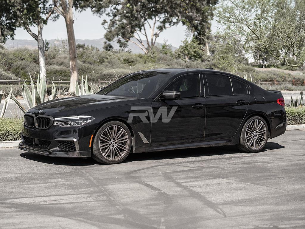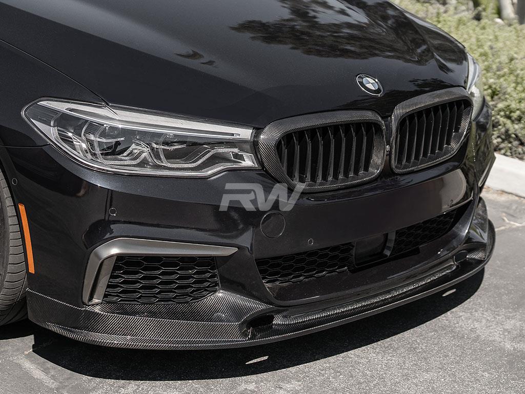 Upgrade the front-end presence of your BMW G30 with this carbon fiber Front Lip from RW Carbon. Designed for a precise OEM-like fitment, this lip adds an aggressive yet refined look to your vehicle's front fascia. Constructed from high-quality carbon fiber with a UV-resistant clear coat, it delivers both visual impact and lasting durability.
