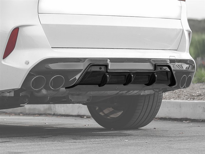 Complete the rear-end transformation of your BMW F95 with this carbon fiber Rear Diffuser from RW Carbon. This diffuser integrates seamlessly with the factory rear bumper, adding a purposeful, performance-oriented appearance. Crafted from lightweight carbon fiber with a UV-protective clear coat for enduring quality.
