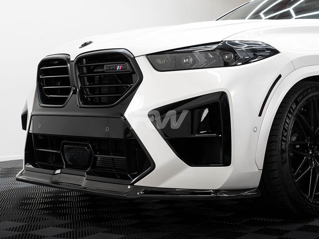 Upgrade the front-end presence of your BMW F96 with this carbon fiber Front Lip from RW Carbon. Designed for a precise OEM-like fitment, this lip adds an aggressive yet refined look to your vehicle's front fascia. Constructed from high-quality carbon fiber with a UV-resistant clear coat, it delivers both visual impact and lasting durability.