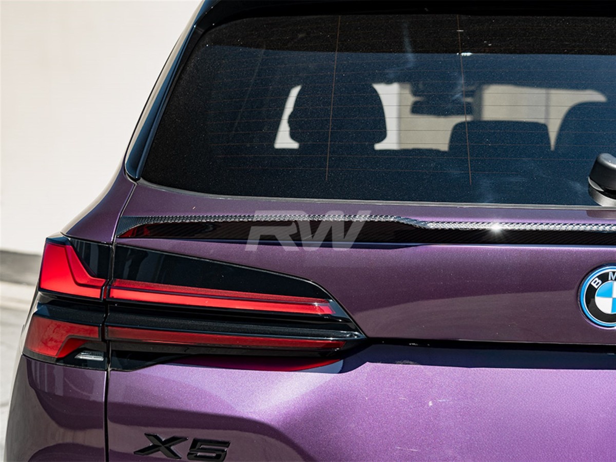 Elevate the rear profile of your BMW G05 with this carbon fiber Trunk Spoiler from RW Carbon. This spoiler delivers a subtle yet impactful improvement to your vehicle's silhouette. Made from genuine carbon fiber and finished with a UV-resistant clear coat, it offers OEM-quality fitment and lasting visual appeal.