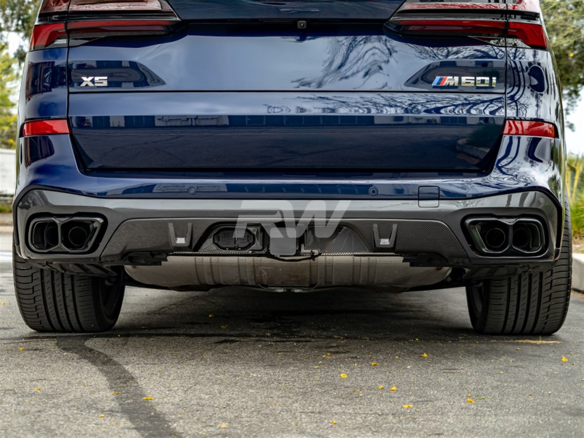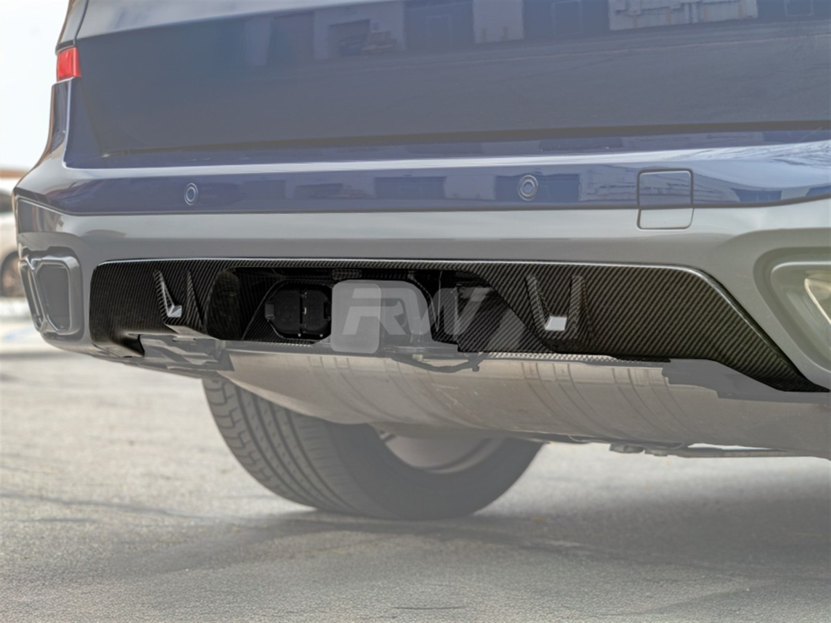 Complete the rear-end transformation of your BMW G05 with this carbon fiber Rear Diffuser from RW Carbon. This diffuser integrates seamlessly with the factory rear bumper, adding a purposeful, performance-oriented appearance. Crafted from lightweight carbon fiber with a UV-protective clear coat for enduring quality.