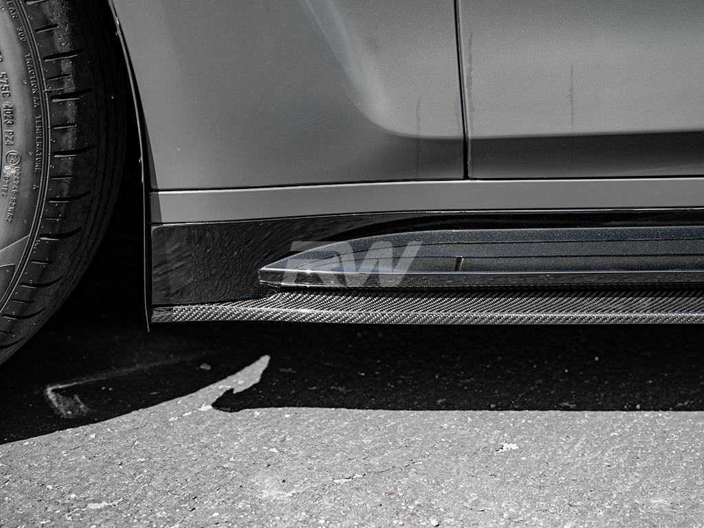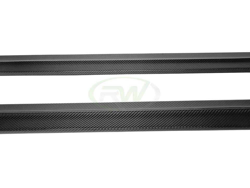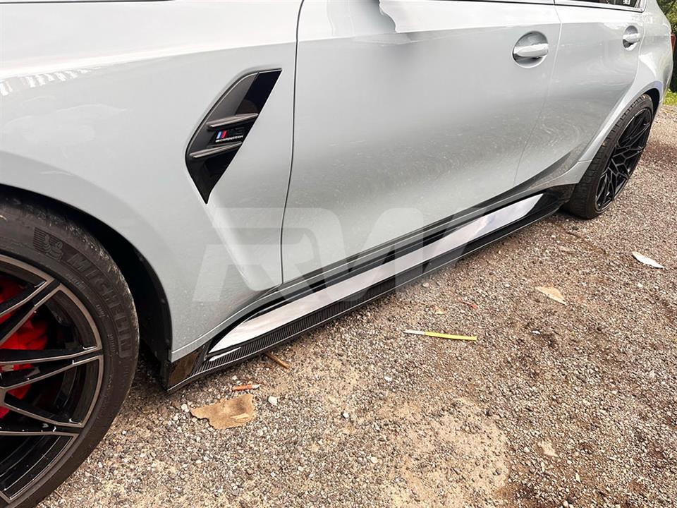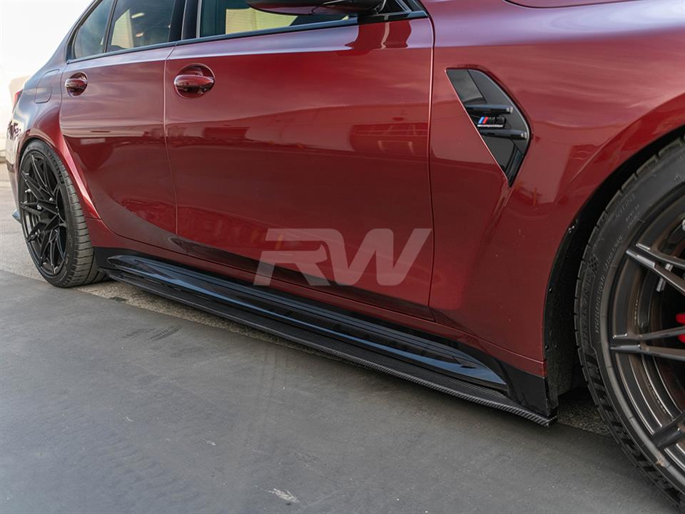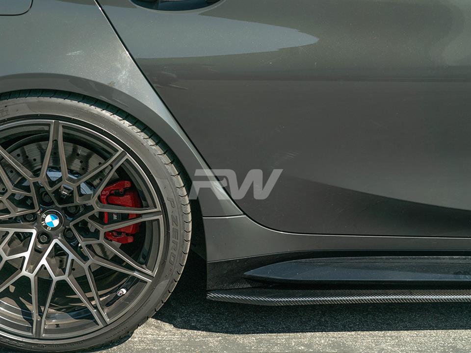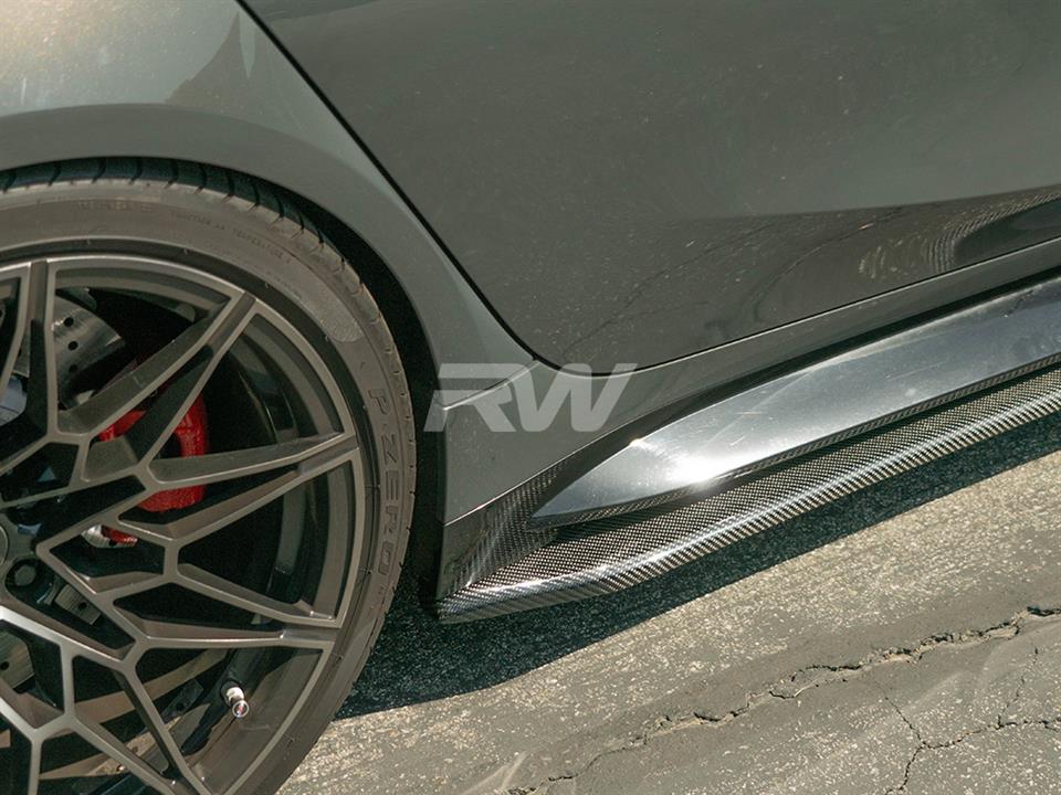 RW Carbon’s very own take on uniquely styled side skirt extensions for your BMW G80 M3 are now available. These side skirt extensions come in a pair and bring a nice sporty look to your G80 M3. These side skirt extensions are built using high quality carbon fiber fabric for a lightweight and rigid product that looks great and comes ready to be installed. These side skirts are covered in a UV resistant clearcoat for a high gloss finish that not only looks great, but help protect your new skirts for thousands of miles of hard driving. These mount using 8-10 self tapping screws and can be done in under an hour. Each and every set is always backed by RW Carbon’s superior fitment and quality guarantee. If you need any further help, please contact us.