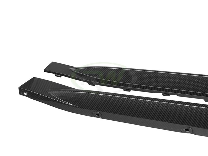 Are you growing tired of your bland looking gloss black side skirts on your 2021+ BMW G82 or G83 M4? Then RW Carbon has a solution with these OEM Style Carbon Fiber Side Skirts. They will replace your side skirts with a full dry carbon fiber version. It will still have the same design but gives you that aggressive CF styling. These side skirts are made with RW’s 2×2 weave pattern and will match any other RW Carbon fiber products that you may have installed. These are made using 100% dry carbon fiber but will still have a high gloss finish since they are clear coated. We quality check each carbon fiber side skirt before it ships from our Southern California facility. If you have any further questions about these OEM style G82/G83 M4 side skirts, please contact us.