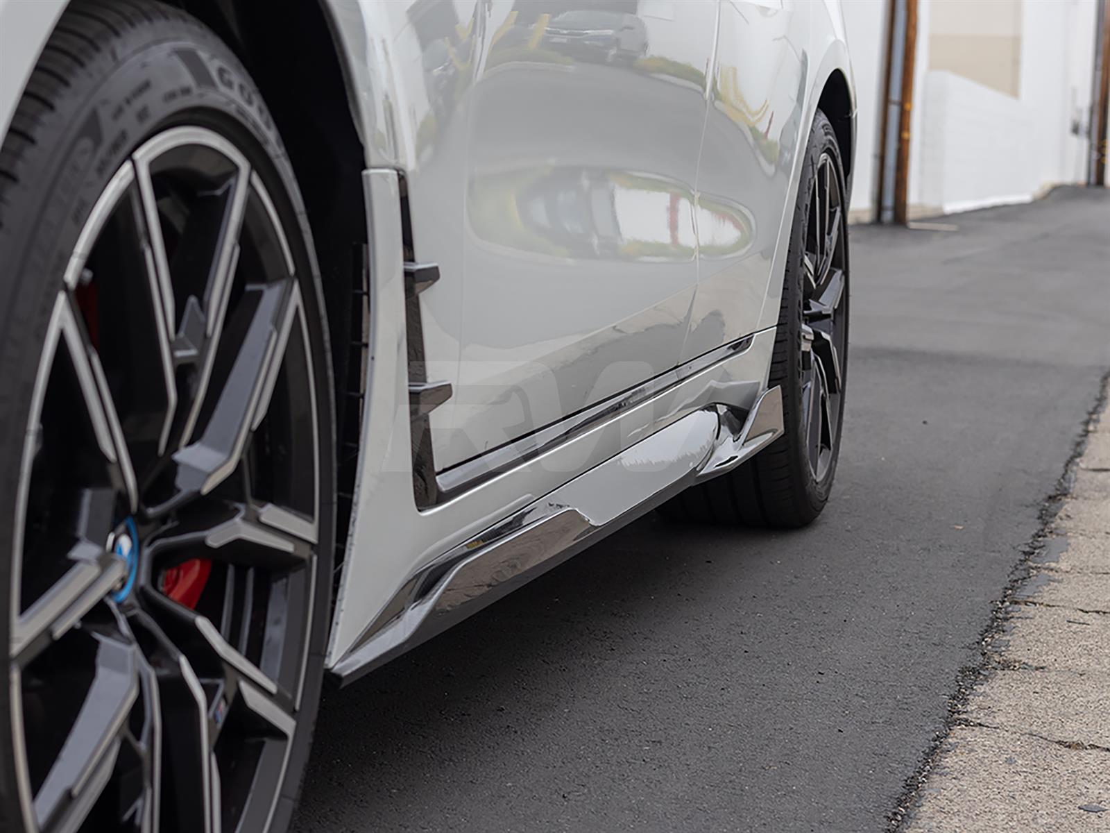Do you want some extra aggressive styling added to your vehicle’s side profile? Enhance the side profile of your BMW i4 with these Dry Carbon Fiber Side Skirt Extensions. Our dry carbon fiber promotes a clearer looking CF weave and a stronger, lighter and more durable skirt extension. All of our carbon fiber at RW Carbon is backed by a quality and fitment guarantee to ensure that you receive the most quality product on the market. Installation is simple, just apply self-tapping screws into the underside of your side skirts along with some 3M tape on the top and you are good to go. Each or is sold as a set of 2 and are quality checked prior to shipping to your doorstep.