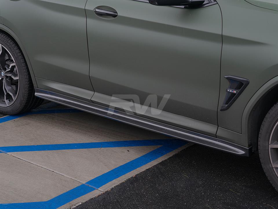 Enhance the side profile of your BMW X3M with these carbon fiber Side Skirt Extensions from RW Carbon. Designed to seamlessly integrate with the factory rocker panels, these extensions create a lower, more aggressive stance. Constructed from premium carbon fiber with a high-gloss clear coat finish.