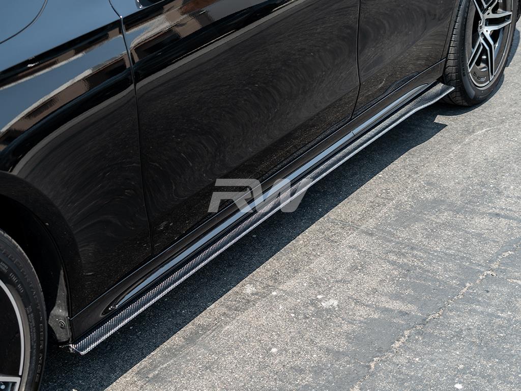 Enhance the side profile of your Mercedes W214 with our Carbon Fiber Side Skirt Extensions. These extensions are designed for a precise fit, following the natural body lines of the vehicle for a clean and aggressive appearance. Made from genuine 2×2 weave carbon fiber, they are both lightweight and durable. Each set is finished with a UV-resistant gloss clear coat to maintain a deep shine and protect against fading. These side skirt extensions pair perfectly with other carbon fiber upgrades for a cohesive look. If you have any questions regarding this part, feel free to contact us!