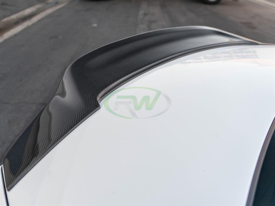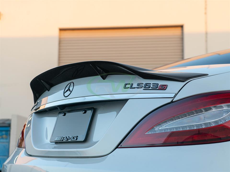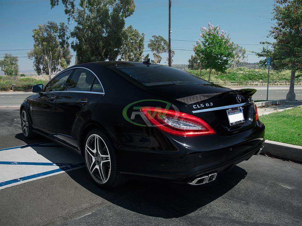 If you are looking for the biggest and most aggressive trunk spoiler for you Mercedes W218 CLS550 or CLS63 AMG then you have come to the right place. This Renn style carbon fiber trunk spoiler is about as big as it gets and goes great with our renn style diffuser. Both have extreme features that will make sure your w218 CLS stands out from the rest. This renn style CF trunk spoiler is contructed using real carbon fiber, unlike some of the cheaper options out on the market that are hydrodipped with a CF pattern. Being made with real carbon fiber, makes our spoiler lighter, stronger and more durable. Plus fake carbon fiber can never compete with the depth and shine of a true clear coat on real carbon fiber fabric. This trunk spoiler has a 2×2 carbon fiber weave that will perfectly match any other carbon fiber exterior parts you have on your W218 from RW Carbon. To ensure no fading or discoloring occurs we complete each piece with a thick high quality clearcoat. Installation is completed with 3M tape, no drilling required.