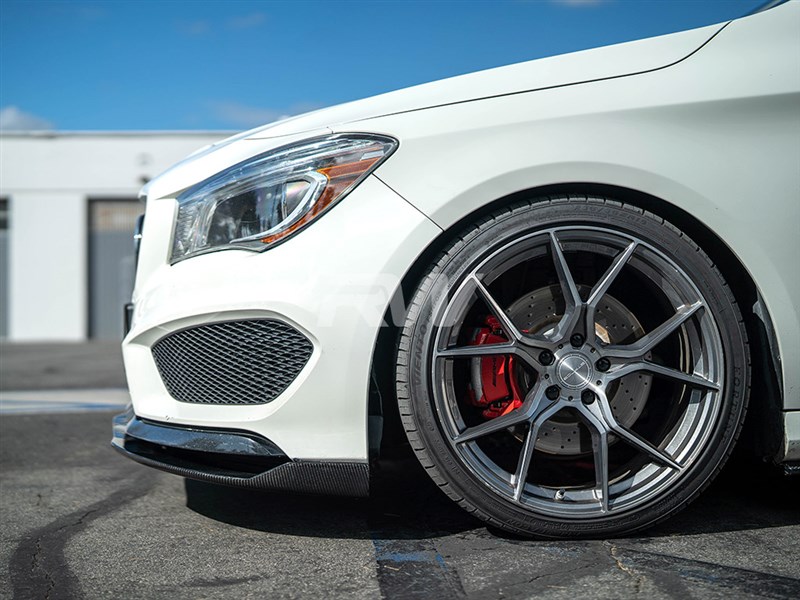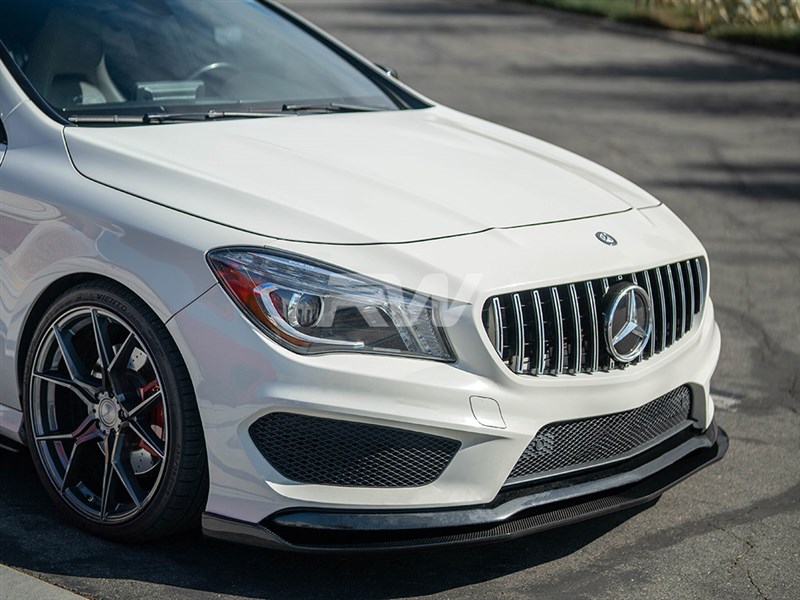 Do you want something more aggressive than the typical front lip for the CLA250 or CLA45 AMG? RW Carbon is now carrying this Revo Style Front Lip Spoiler. This piece is made out of the same 2×2 carbon fiber fabric so the weave will match up perfectly. This piece will attach using self tapping screws which we include with each order. Each Revo Style front lip is inspected for defects in our Southern California warehouse before shipping worldwide. If you have any questions about this CLA front lip please contact us.