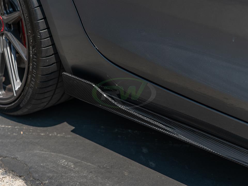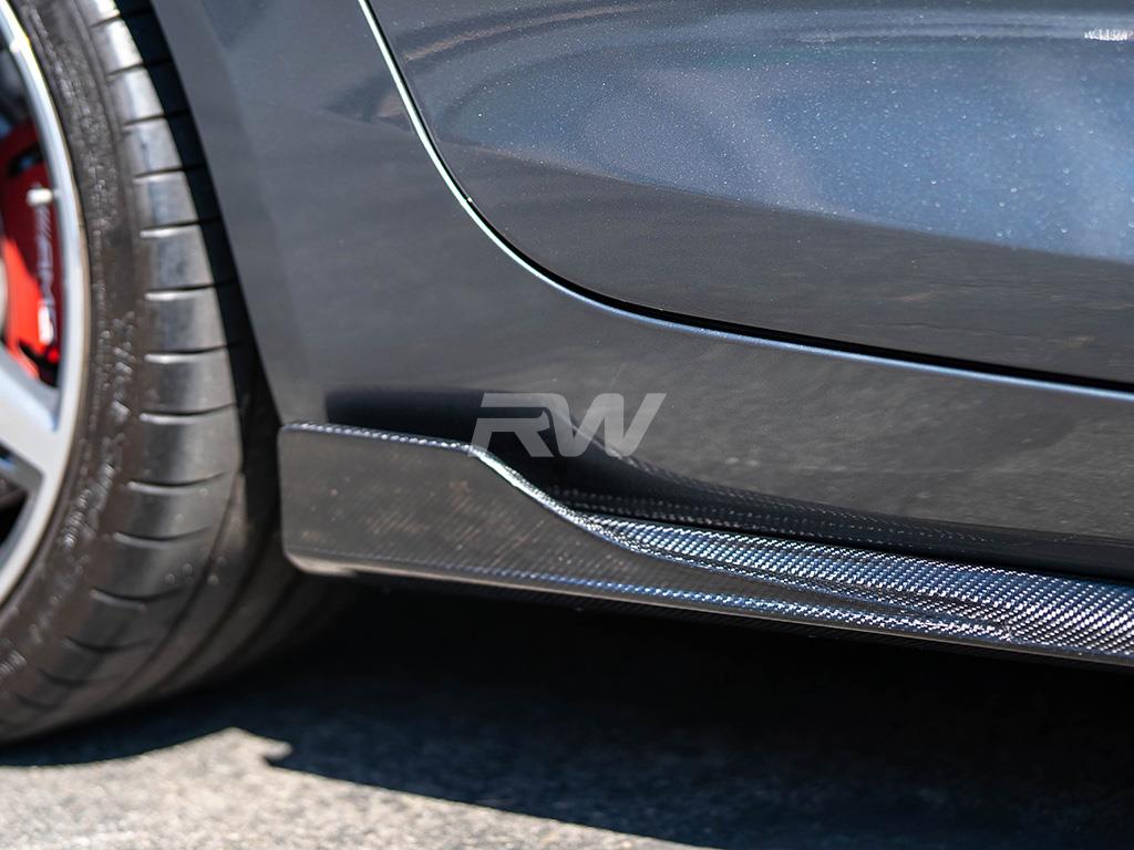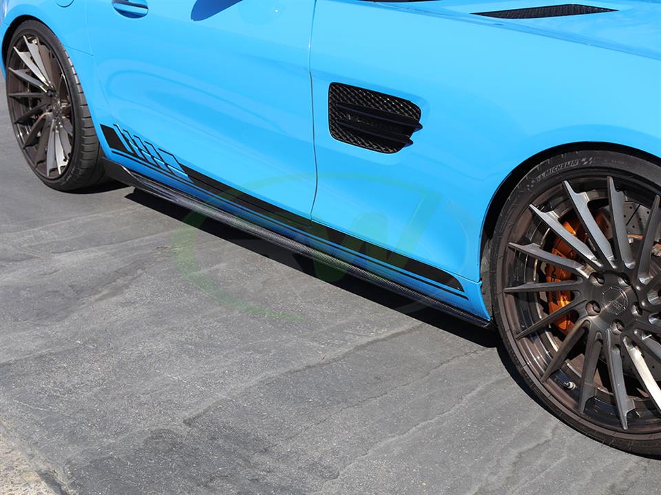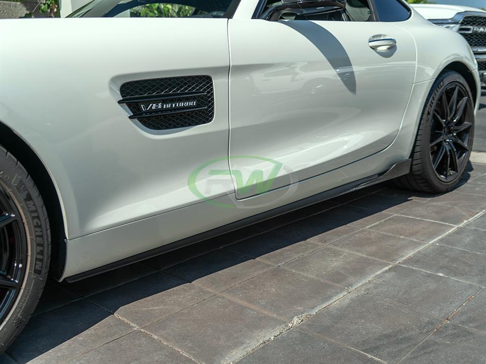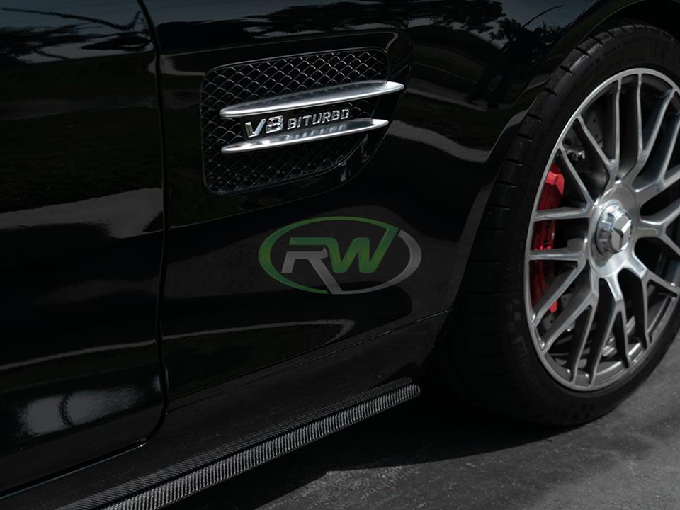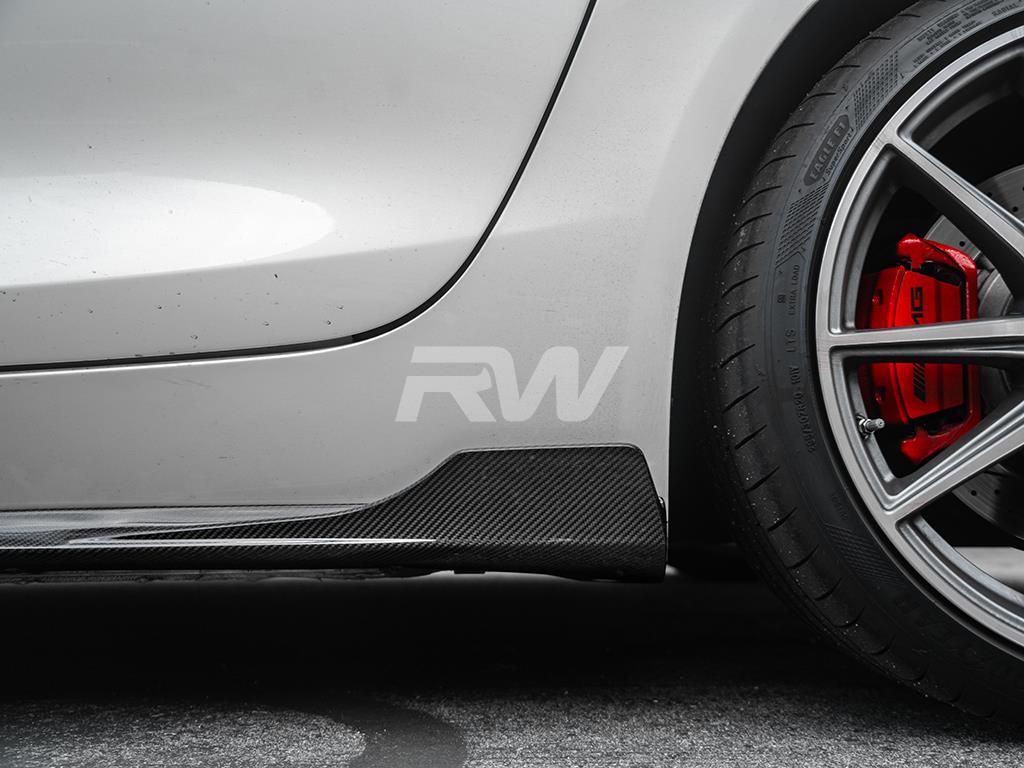 Complete your RW Carbon fiber kit on your Mercedes C190 or R190 GT/GTS with a set of our side skirt extensions. Just like our other Mercedes GT and GTS parts our side skirts are hand crafted from 100% 2×2 carbon fiber – No fiberglass is used to create this item. Since these Mercedes GT and GTS carbon fiber side skirts are made from 2×2 CF they will match all OEM and RW parts you already have equipped on your vehicle. Installation can be completed with self tapping screws, which are included with your order. To ensure your set of carbon fiber Mercedes GT or GTS side skirts last we finish them with a special epoxy clearcoat which yields a brighter, more vibrant finish and makes them less prone to staining from road debris. Buy with confidence – All RW Carbon parts come with our fitment and quality guarantee. Achieve that modified look without overspending when you choose RW for your Mercedes C190 GT/GTS carbon fiber side skirt extensions.