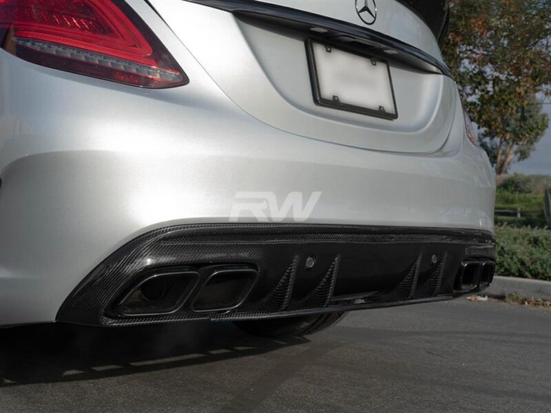 Add a new sporty look to your 2019+ Mercedes W205 AMG Sedan with a RW Carbon Fiber Diffuser. This rear diffuser offers Mercedes owners the chance to ditch that boring OE plastic diffuser for something with a bit more flash and it will drastically change the appearance of your W205. It is made from the same traditional 2×2 carbon fiber weave to ensure that these pieces match any existing RW Carbon fiber already on the vehicle. Our parts are all backed by our fitment and quality guarantee, so if you receive a piece that is defective, we will replace it free of charge. Our W205 CF diffusers are all clear coated for a high gloss finish. This finish will also protect your new diffuser from the elements and make it easy to keep clean. Prior to shipping to your door, we quality check the product one last time and custom package it so that your new W205 diffuser arrives safe and sound.