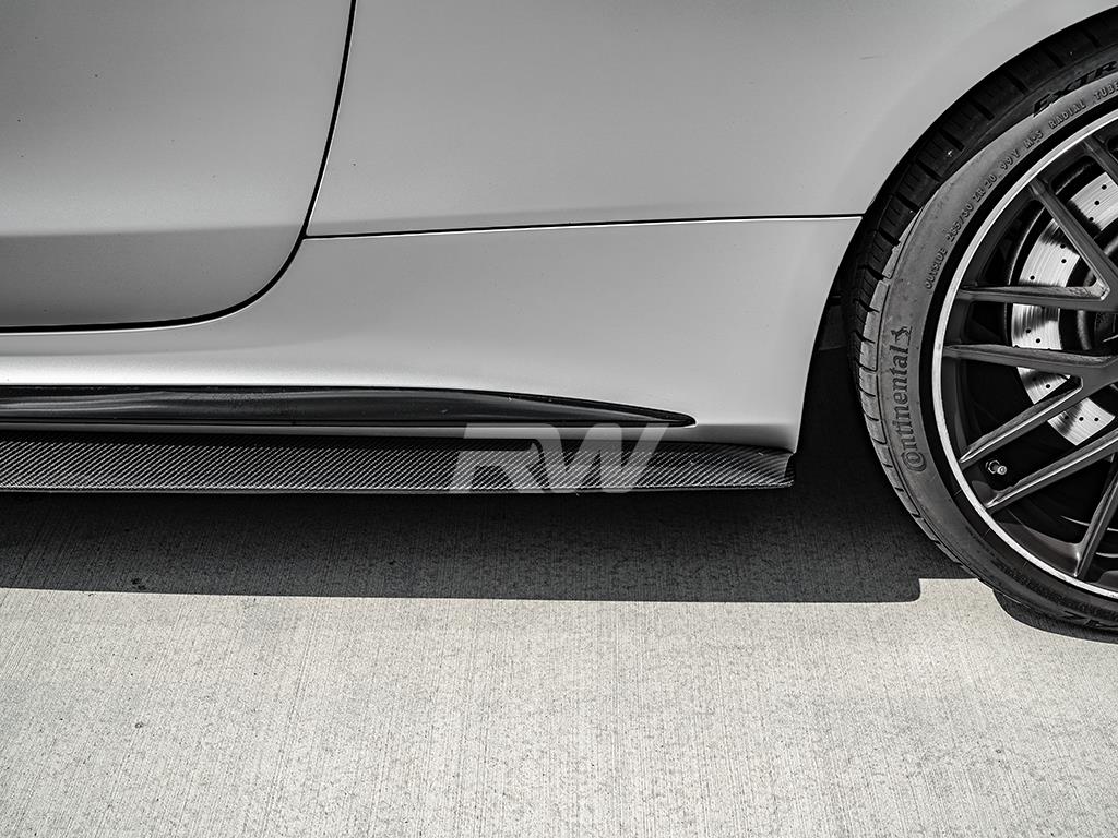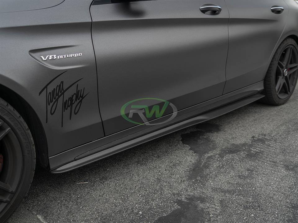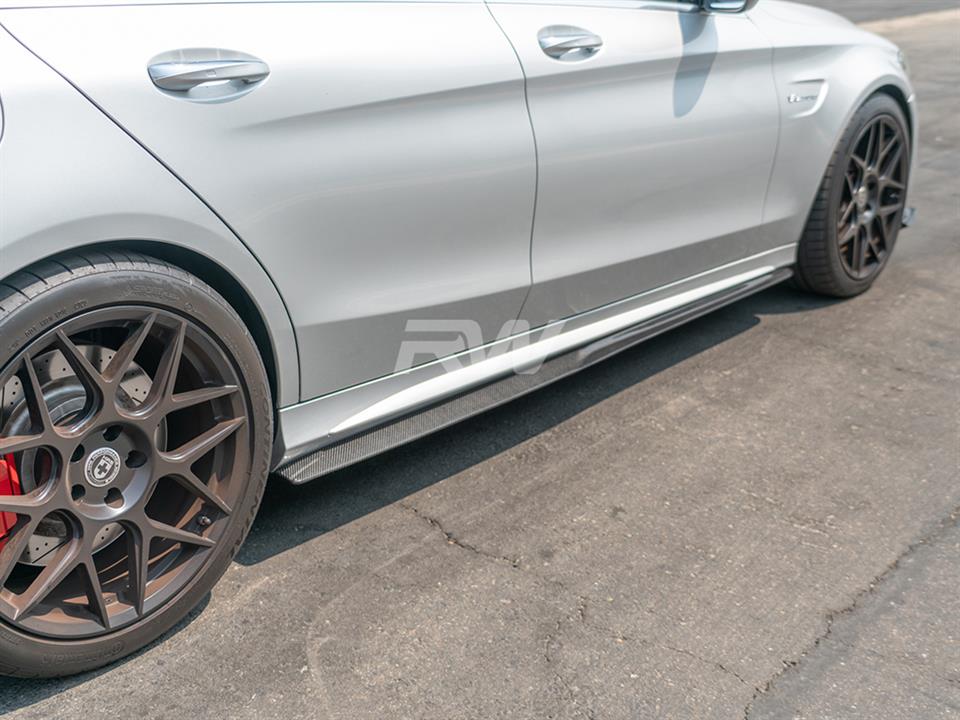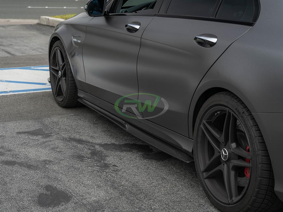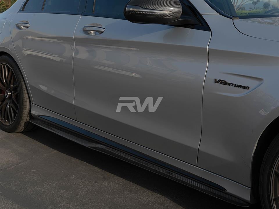 Achieve the complete carbon fiber look on your W205 with a set of these GTX carbon fiber side skirt extensions from RW. Our W205 carbon fiber side skirt extensions simply bolt onto your existing side skirt via the use of self tapping screws. No special modifications are required to install these extensions, and can be installed in under an hour. Each order includes 1 passenger and 1 driver side carbon fiber extension. We craft these Mercedes w205 side skirts from genuine carbon fiber – for a lightweight and strong product. To complete the skirts we finish them with a UV resistant clearcoat to prevent discoloration and provide for a lustrous shine. They fit both C63/C63S and Sport C Class applications such as the C300, C400, C450 and C43 AMG. Each set is backed by RW Carbon’s fitment and quality guarantee.