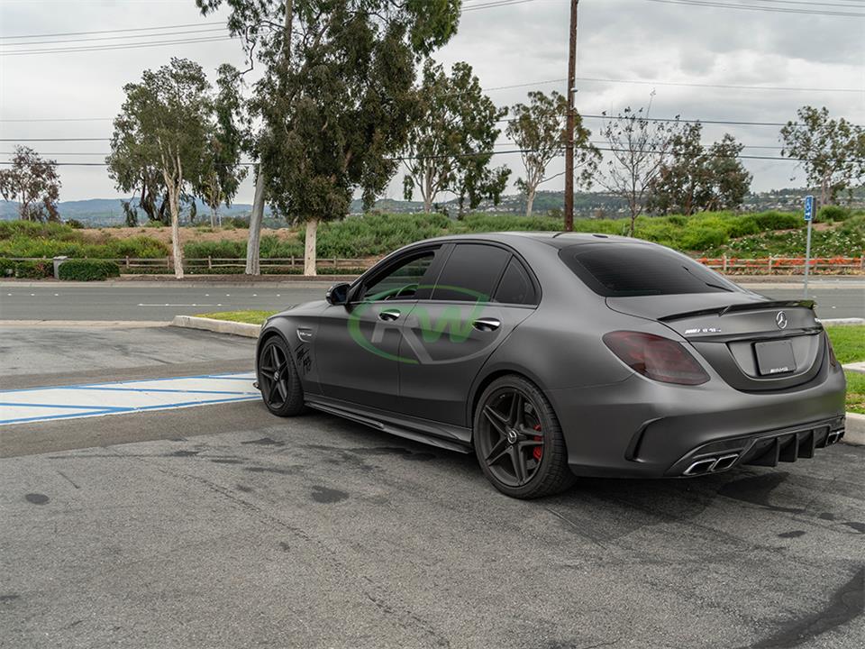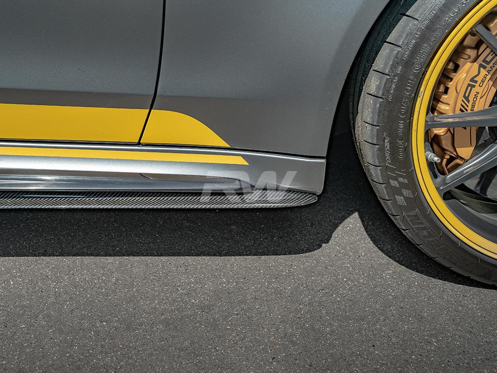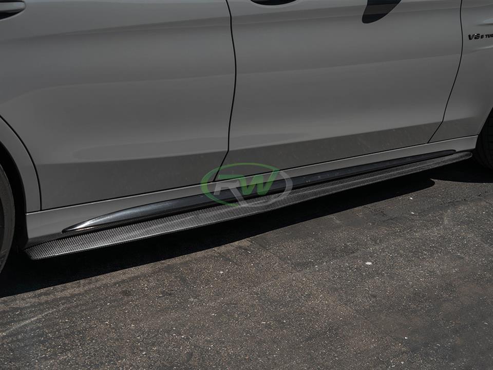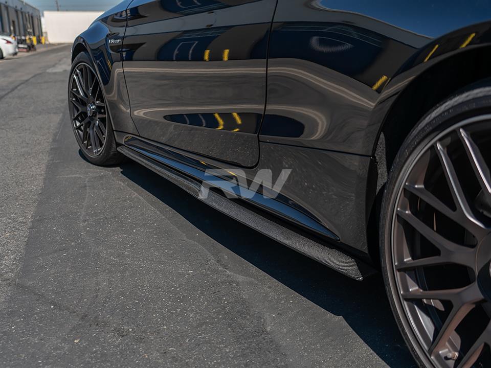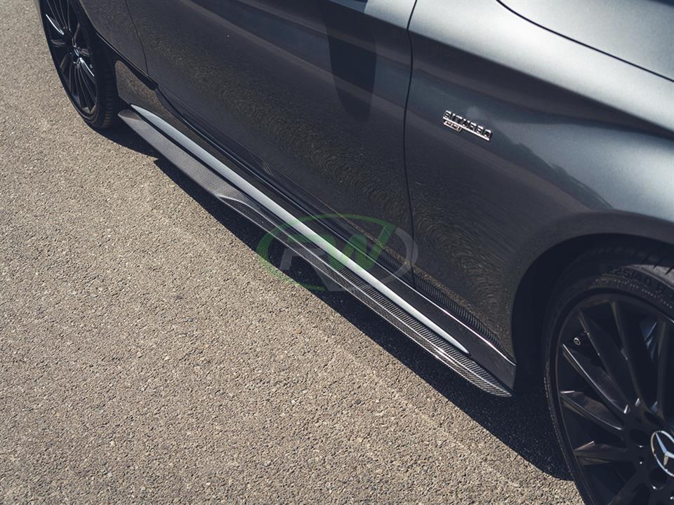 Achieve the complete carbon fiber look on your W205 with a set of these GTX carbon fiber side skirt extensions from RW. Our W205 carbon fiber side skirt extensions simply bolt onto your existing side skirt via the use of self tapping screws. No special modifications are required to install these extensions, and can be installed in under an hour. Each order includes 1 passenger and 1 driver side carbon fiber extension. We craft these Mercedes w205 side skirts from genuine carbon fiber – for a lightweight and strong product. To complete the skirts we finish them with a UV resistant clearcoat to prevent discoloration and provide for a lustrous shine. They fit both C63/C63S and Sport C Class applications such as the C300, C400, C450 and C43 AMG. Each set is backed by RW Carbon’s fitment and quality guarantee.
