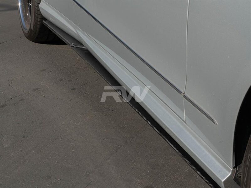 If you are looking for that final piece to tie together a carbon front lip and diffuser you have on your E350, E550 or E63 AMG these carbon fiber side skirt extensions are just what you have been looking for. These Mercedes W212 E Class AMG CF side skirt extensions attach to your factory side skirts through the use of screws, with no special modifications required to your vehicle. These come in a 4 piece kit or two pieces per side. Each set of quality checked prior to shipping to you. All of our W212 carbon fiber side skirt extensions are hand crafted from genuine 2×2 carbon fiber that is then finished with a clearcoat that prevents any discoloring from UV exposure. If you have other RW parts on your W212 then the weave of these extensions will perfectly match.