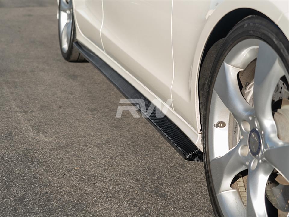 Add some extra aggressive styling to the side view of your mercedes W218 CLS with a sweet new set of carbon fiber side skirt extensions from RW. These carbon fiber side skirt extensions are built to conform to the body lines of the vehicle allowing for a seamless fitment and somply install via self taping screws on the underside. These carbon fiber side skirts are made from the same traditional 2×2 carbon fiber weave to ensure that these pieces match any existing carbon fiber already on the vehicle. Our parts are all backed by our fitment and quality guarantee to ensure you are getting a quality piece. Please contact us today if you are interested in getting a set of these W218 carbon fiber side skirts installed .