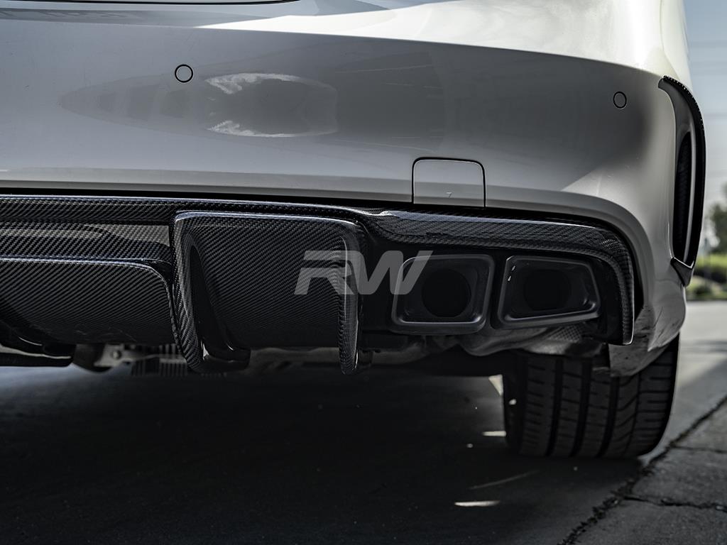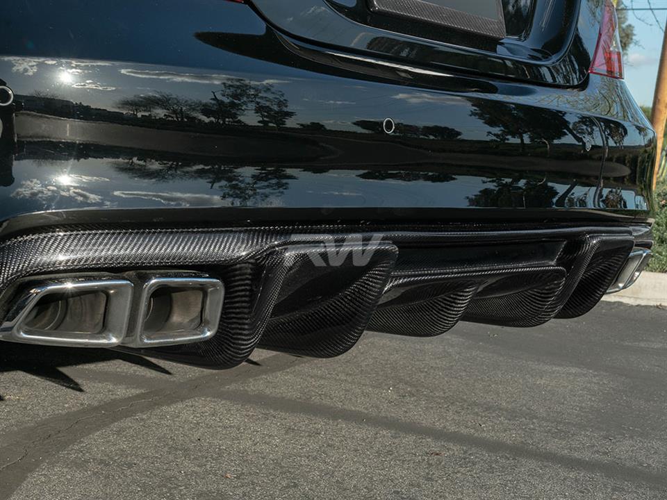 Professional installation is always recommended for RW Carbon’s products including this carbon fiber CLS63 rear diffuser. Removing the rear bumper is highly recommended for this diffuser to fit properly. Please test fit and clean the applied area before installation. This installation is rather involved and will require screws/drill. If you are local to RW Carbon please contact us and we can install it for you.