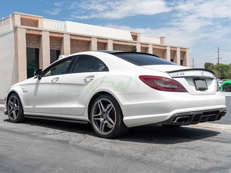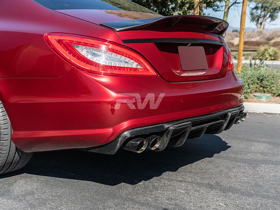Obtain the most aggressive rear-end appearance for your 2012-2018 CLS63 with this RW Carbon Renn Style Carbon Fiber Rear Diffuser. Our CLS63 rear diffuser incorporates aggressive carbon fiber styling for the rear without a super-hefty price tag. Best of all this CLS63 diffuser takes the place of your existing plastic diffuser which will re-use some OEM mounting locations and create a more secure fit. We finish all of these carbon fiber diffusers with a clear coat which makes them easy to clean and allows them to stand up to the elements. The rear bumper will need to be removed in order to properly install this diffuser so we recommend having a local shop do the install for you. Whether you’re looking for that one unique exterior piece or already have a carbon exterior theme, our Renn style Carbon Fiber Rear Diffuser is an awesome upgrade for your W218 CLS63.