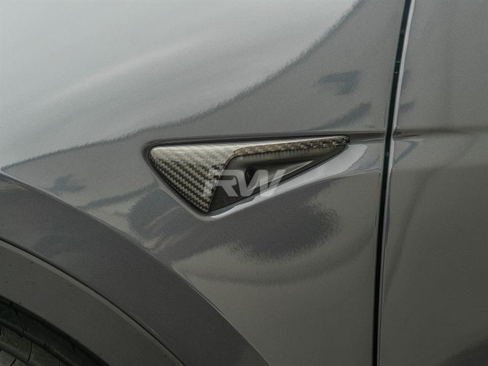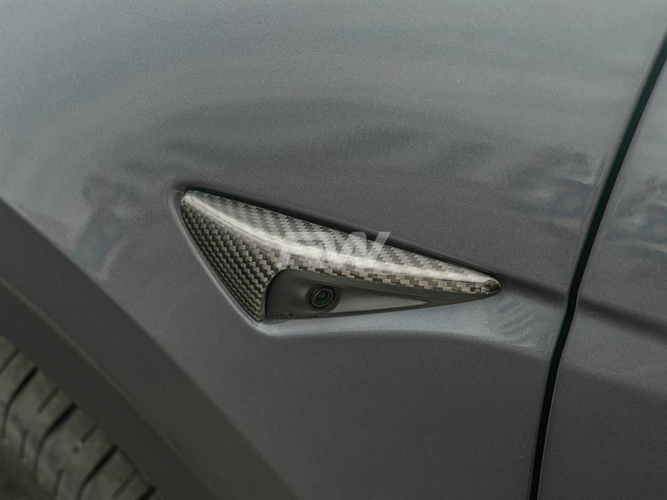 Complete the carbon fiber exterior theme of your Tesla Model 3 / Y with these Carbon Fiber Fender Trims. Installation is a breeze, only requiring 3M tape and taking about 30 minutes. Each fender trim is carefully crafted using authentic 100% carbon fiber that will withstand the test of time in addition to a UV-resistant clear coat for extra protection. Our genuine 2×2 weave carbon fiber components will give your Tesla Model 3 an appearance enhancement with the same quality you would receive from the factory. Your Model 3 / Y deserves high-quality fender trim replacements – Go with RW Carbon.