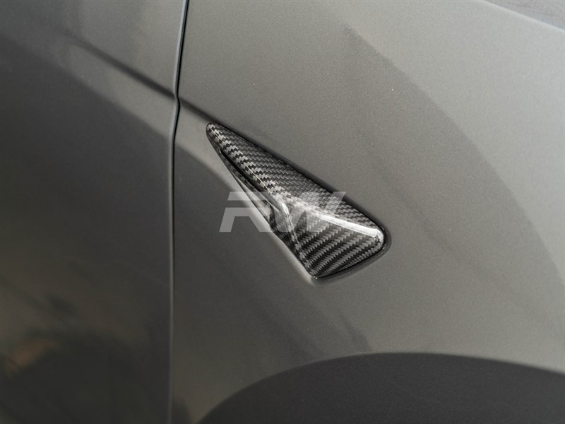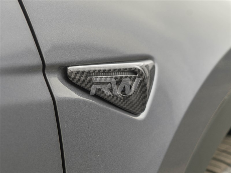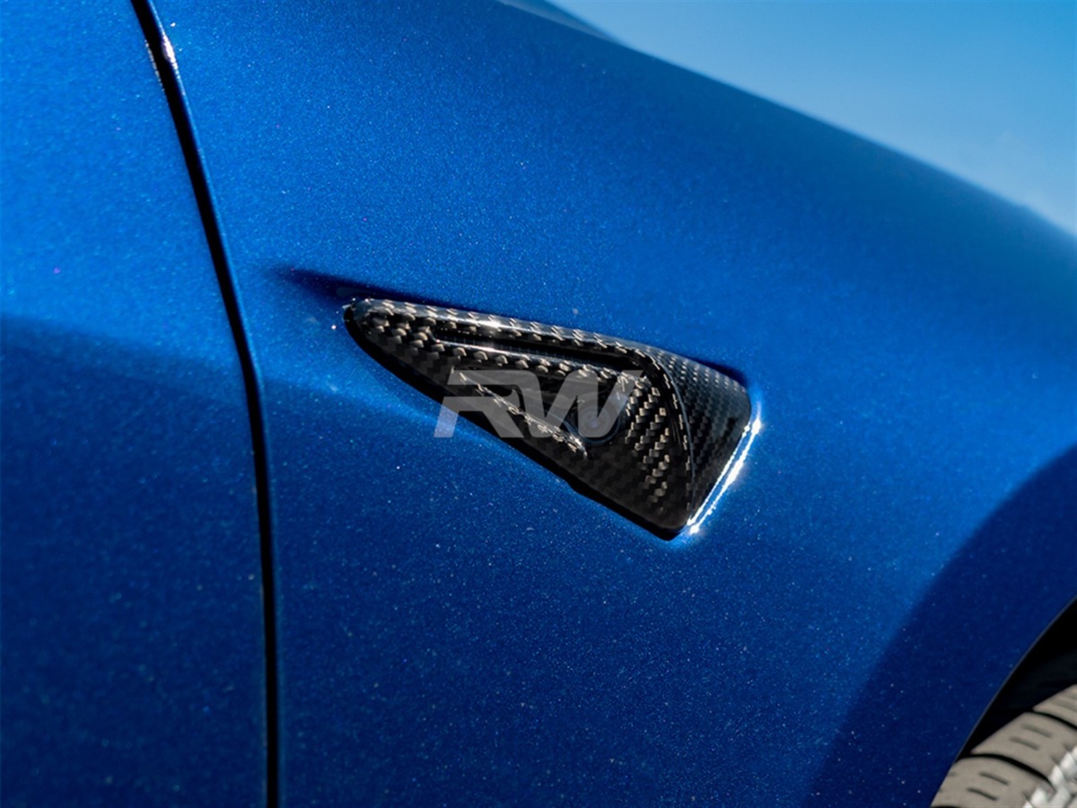 Complete the carbon fiber theme of your Tesla Model 3 / Y with these V2 Full Carbon Fiber Fender Trims. Installation is a simple process that makes these V2 fender trims a subtle styling addition with little work involved. Each fender trim is carefully crafted using 100% carbon fiber that will withstand the test of time in addition to a UV-resistant clear coat for extra protection from fading. Our genuine full carbon fiber components will give your Tesla Model 3 or Y an appearance enhancement with the same quality you would expect from the factory. Give your Tesla an aesthetic carbon fiber makeover today!