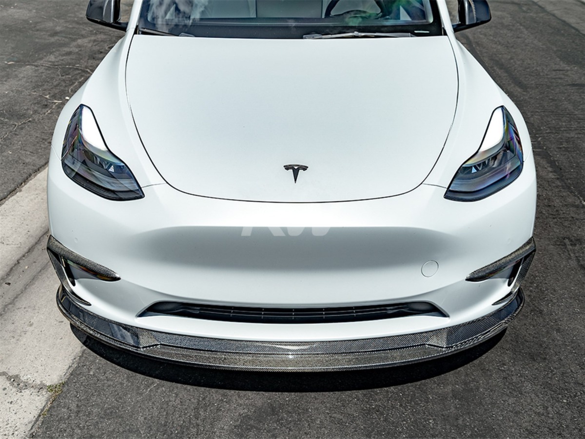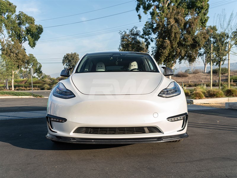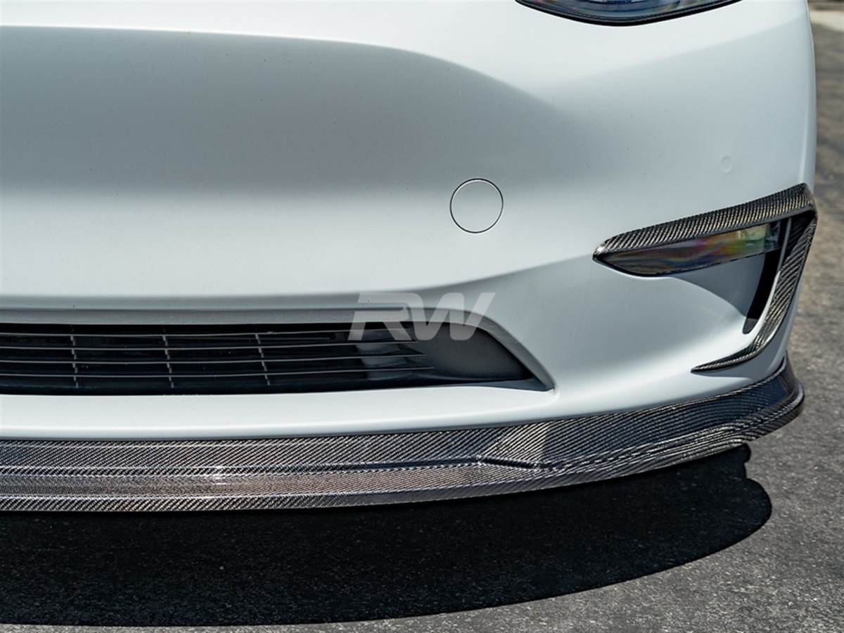 RW Carbon is happy to introduce our very first carbon fiber front lip spoiler for the Tesla Model Y. With a new sense of aggressive styling, your Tesla Model Y will look more unique and distinguished on the road. This front lip spoiler is made with genuine 2×2 weave carbon fiber and is made to fit excellently. This piece is then covered in a UV resistent clearcoat in order to promote a lasting shine. RW Carbon backs each Tesla Model Y front lip with our superior fitment and quality guarantee. Just like all of our other parts we also quality check each and every piece before shipping them around the world. Installation is made easy using self-taping screws. If you have any further questions about this Tesla Model Y CF Front Lip please contact us.