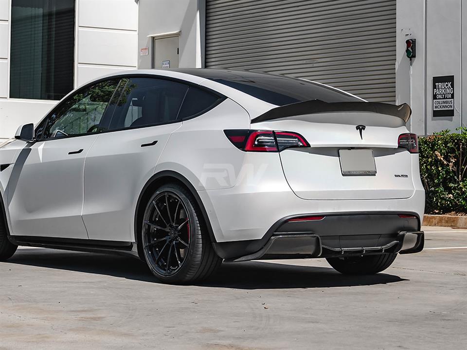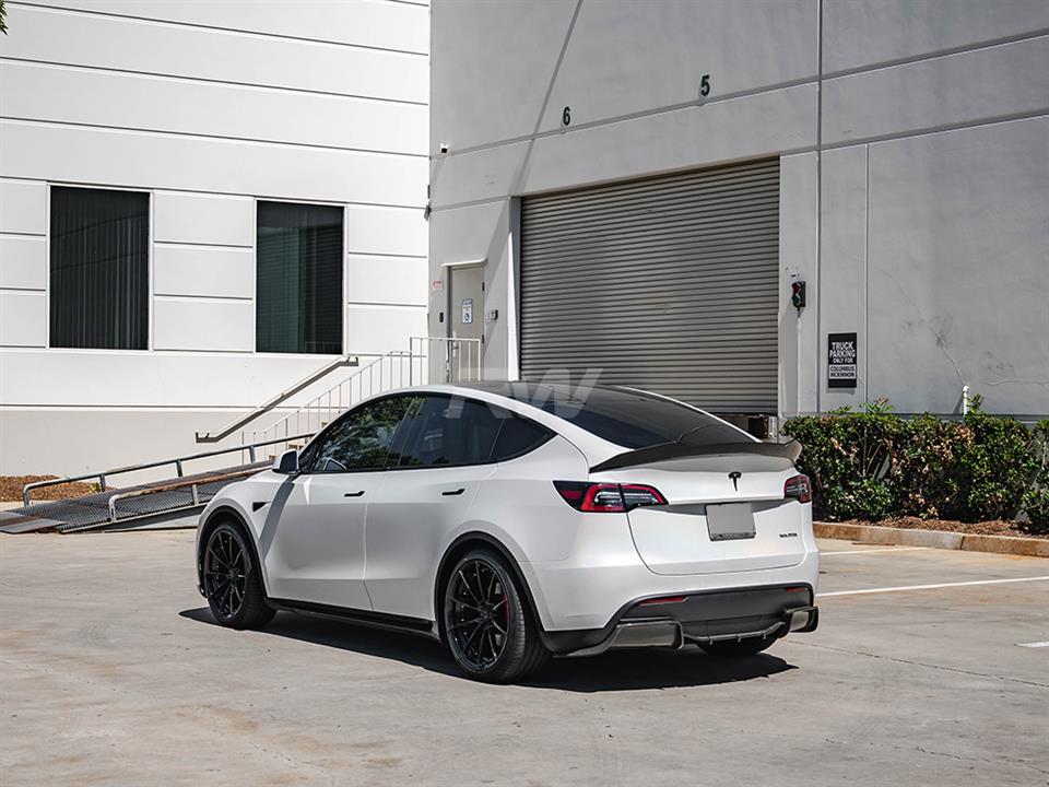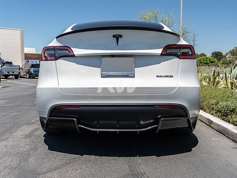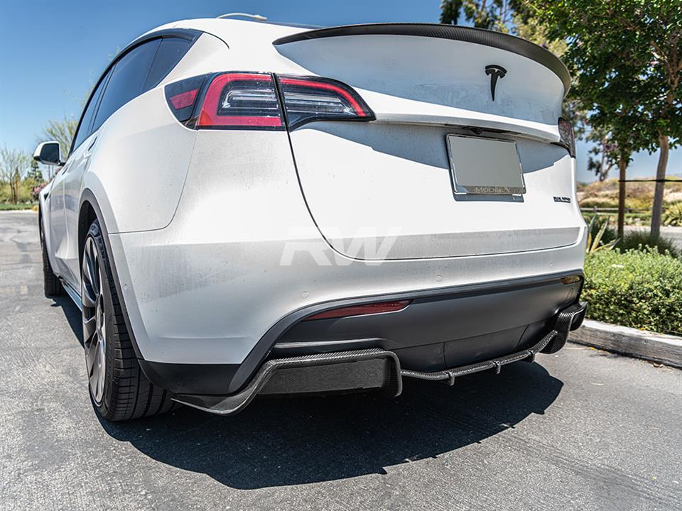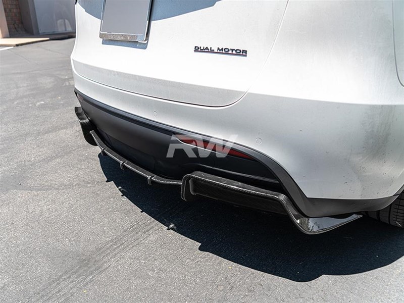 Begin or finish off your Tesla Model Y carbon fiber endeavors with this DTM style FULL dry carbon fiber diffuser. This diffuser is made with the same genuine dry carbon fiber fabric all of our other Tesla Model Y parts are made from. This ensures everything will match perfectly for a nice appearance and they are ultra-lightweight and strong. Each diffuser is overlaid with a protective UV-resistant clear coat that gives you a high gloss appearance. Shop with confidence knowing you will receive a great-looking Tesla Model Y DTM Full Carbon Diffuser that will have superb fitment and is backed by a reputable company with outstanding customer service. Each piece is quality-checked and shipped out from our facility in Southern California where we back this diffuser with our fitment and quality guarantee.