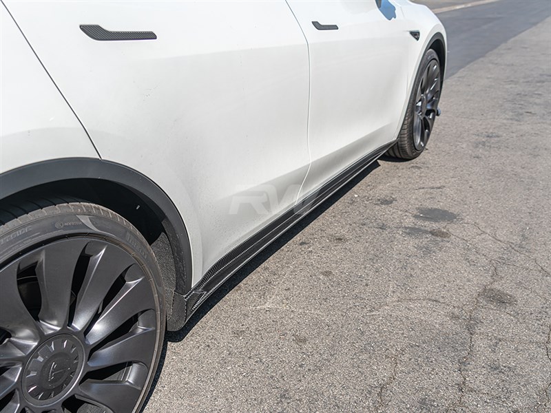 Enhance the side profiles of your Tesla with these Model Y DTM Style Carbon Fiber Side Skirt Extensions. These side skirts are the perfect addition for you, as they eloquently spice up your vehicle on both sides. They also pair perfectly with our DTM front lip and diffuser. All of our carbon fiber at RW Carbon is backed by a superior quality and fitment guarantee to ensure that you always receive the most quality product that you can get on the market. RW Carbon makes these side skirts using 100% dry carbon fiber for an ultra-lightweight product. Each piece is encased in a clear coat to promote a lasting shine and shimmer. Installation is fairly simple, and can be completed in about 1-2 hours.
