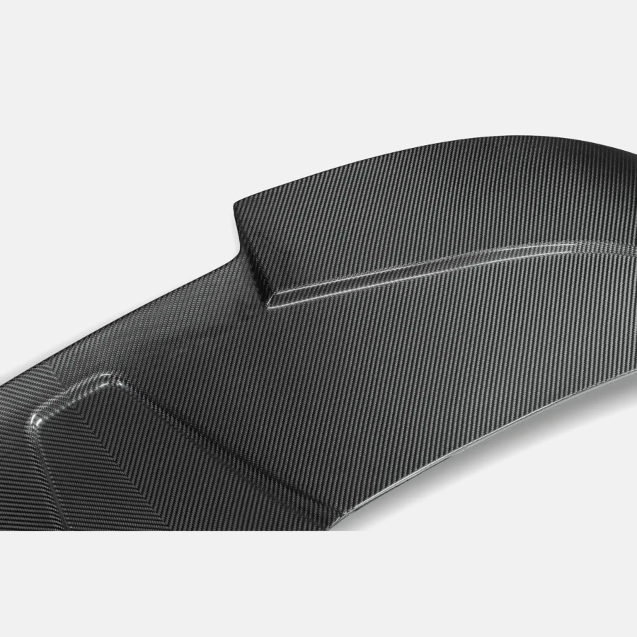 Crafted from premium 2×2 carbon fiber weave, this rear wing delivers exceptional stiffness-to-weight ratio for optimal aerodynamic performance. The distinctive weave pattern showcases motorsport-grade quality with a gloss clear coat finish that commands attention from every angle.