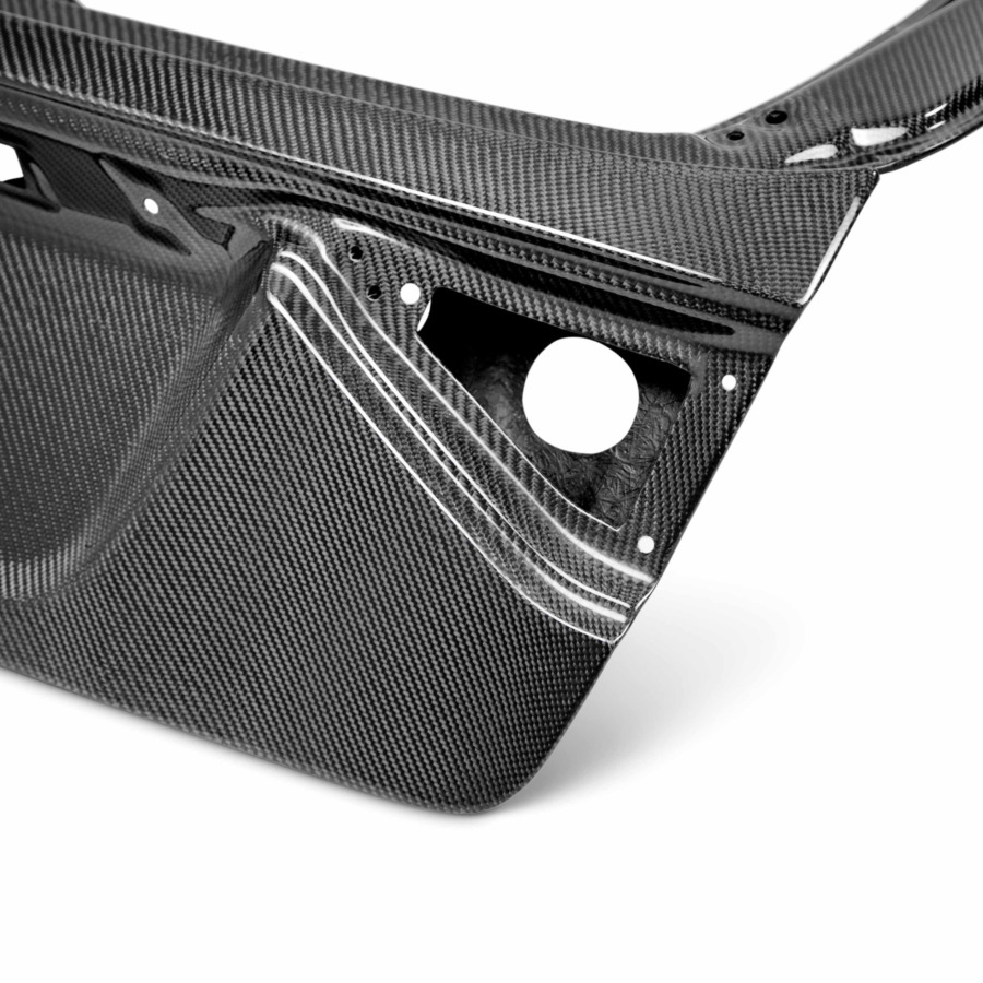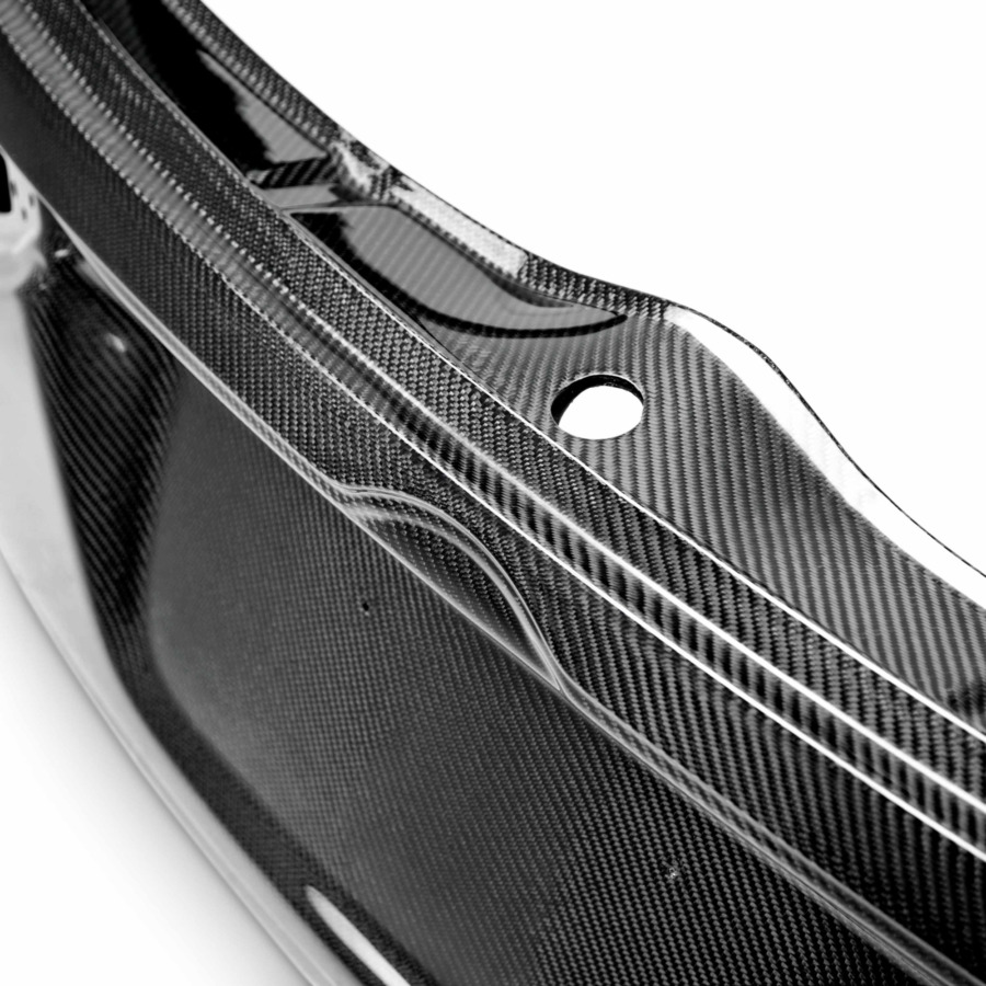 What separates Seibon from cheaper alternatives is their legendary weave consistency. The carbon fiber grain is perfectly aligned across the entire surface with no waviness, ripples, or imperfections. This is the gold standard in automotive carbon fiber — the difference is visible from across the parking lot.