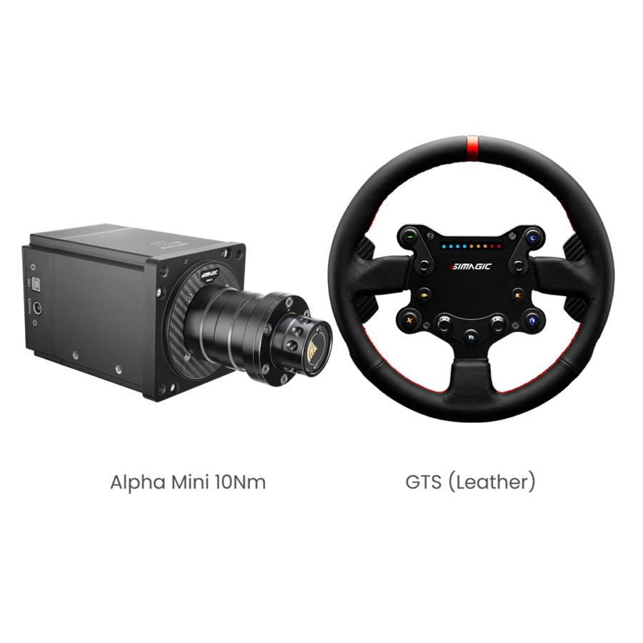The Simagic Alpha Mini 2-Piece Bundle pairs Simagic’s Alpha Mini direct drive wheelbase (10Nm) with your choice of premium Simagic steering wheel — everything you need to start sim racing at a professional level, in one package at a bundled price. Choose from the NEO X Series (330T, 310G, 330R, 350W), the GT NEO, or the GTS in leather or suede to match your preferred racing discipline.