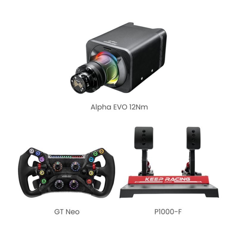 - Alpha EVO (12Nm) + wheel + pedals — complete racing setup
