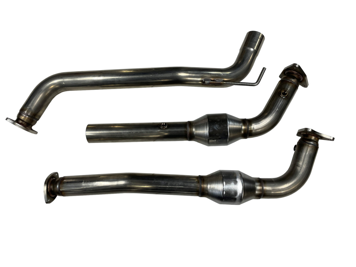 SPD Performance High Flow Catted Stainless Downpipes for 2010-2021 Toyota Tundra 4.6L and 5.7L engines. Uses the highest grade EPA approved catalytic converters and larger 3-inch diameter mandrel bent T304 stainless tubing which improves throttle response, mileage and overall performance while reducing back pressure and exhaust temperatures. Features high flow 400CPSI or GESI G-Sport catalytic converters that do not cause check engine lights, larger diameter factory style flanges, and high grade stainless clamps for a solid seal with no leaks. Does not require custom tuning and can be used as a factory Y-pipe replacement. Standard USA-made catalytic converters are designed for racing applications. Optional GESI G-Sport 85230 catalytic converters available rated for up to 1600 horsepower. Supercharged trucks will see approximately 35 rear wheel horsepower gains, with custom tuning yielding additional power. All necessary gaskets and hardware included. Will not ship to California.