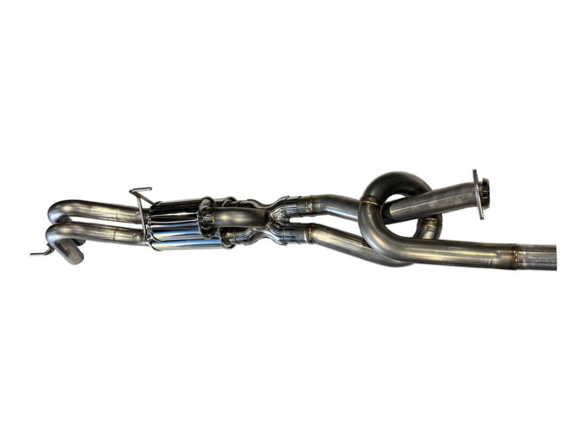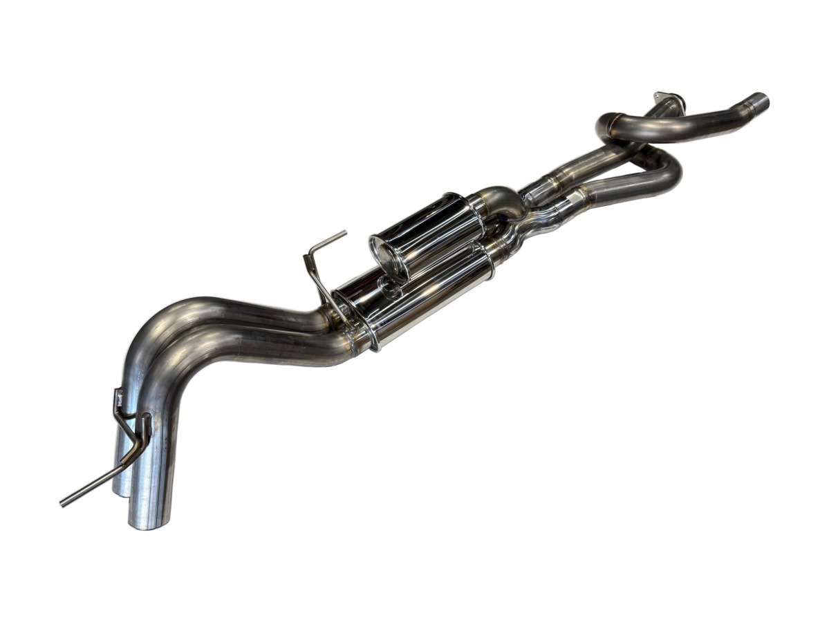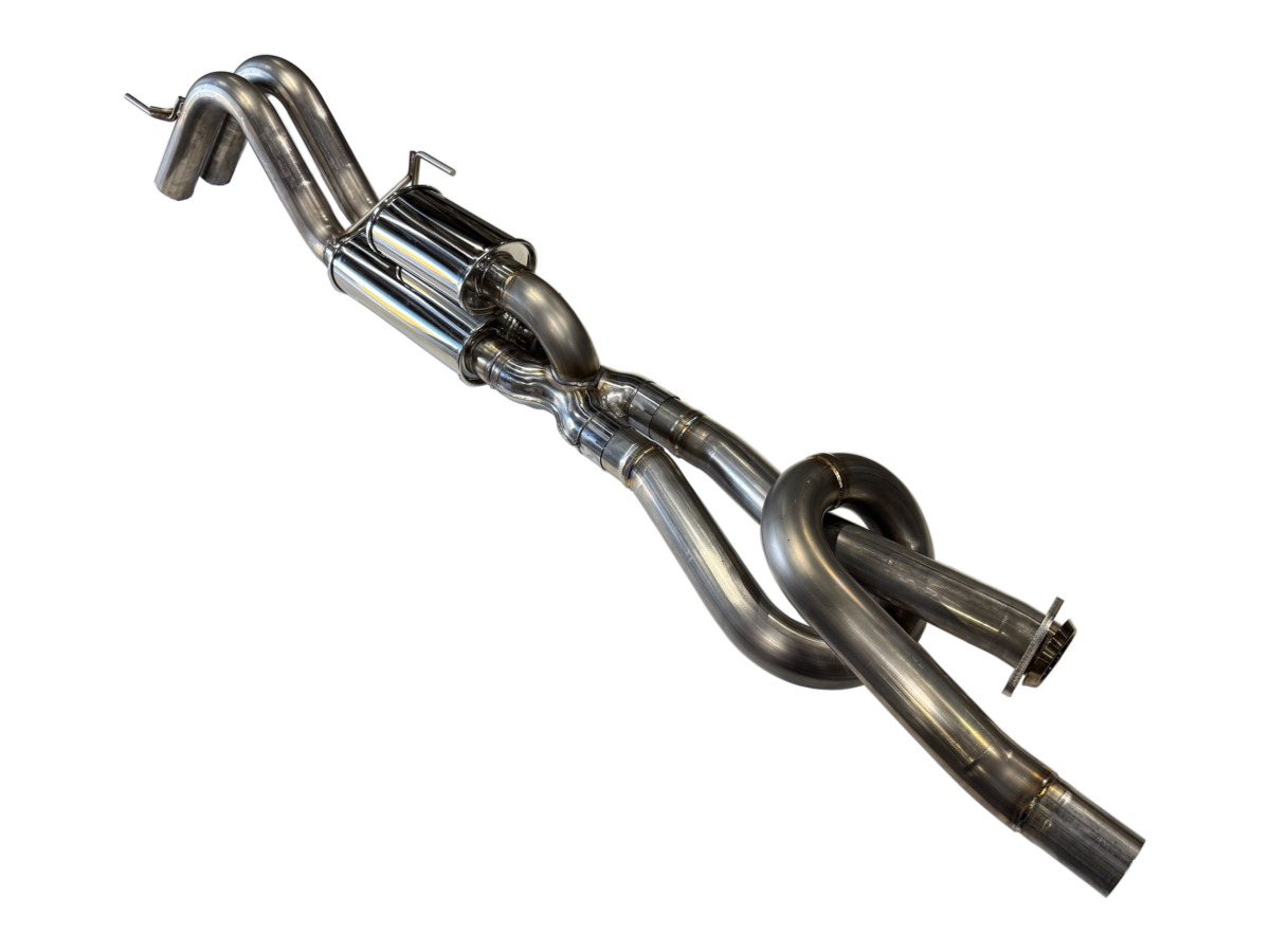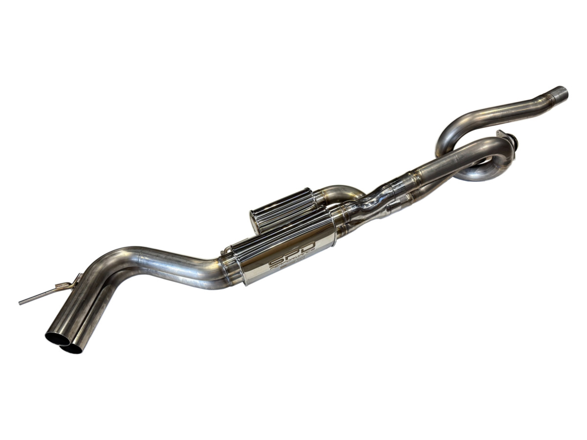 SPD Performance HX Series Equal Length Over-Axle Dump Cat-Back Exhaust for 2015-2020 Ford F-150. Part of SPD’s dual equal length exhaust pre-axle dump performance kit system. Features HX Series Helmholtz technology with equal length design for balanced exhaust pressures. Manufactured using 304 stainless steel mandrel bent 3-inch tubing and HX Series muffler designed for maximum performance and longevity. HX Series mufflers use hard packing sound dampening material that does not break down from harsh harmonic vibration and heat cycles. Over-axle dump design provides improved ground clearance and departure angles. Installation is 100% bolt-on with no cutting needed. Compatible with 2015-2020 F-150 models with 2.7L, 3.5L EcoBoost, and 5.0L engines.