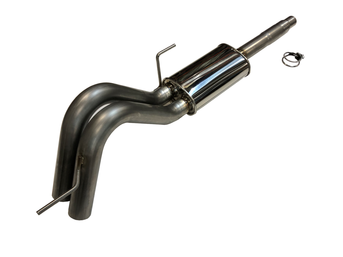 SPD Performance HX Series Over-Axle Dump Dual Exit 304SS Cat-Back Exhaust Kit for 2021-2025 Ford F-150 with 2.7L, 3.5L EcoBoost, and 5.0L engines. Features dual dump exits positioned behind the rear axle to prevent hangups during off-road driving. 3-inch diameter mandrel-bent T304L stainless steel tubing and muffler with TIG welding. Extremely deep exhaust note with SPD’s long life drone canceling muffler. High-hung muffler design reduces ground contact risk. Over-axle dump design provides maximum departure angle and clearance for the most challenging terrain. SPD guarantees mufflers to hold sound quality for 10 years using solid noise deadening rather than loose material. Retains factory resonator to manage noise levels. Available for 123-inch, 145-inch, 157-inch, and 163-inch wheelbases. Resonator options include Delete, Stage 1, or Stage 2 configurations. Made in Oregon. Excludes 3.5L PowerBoost hybrid and 126-inch wheelbase regular cab models.