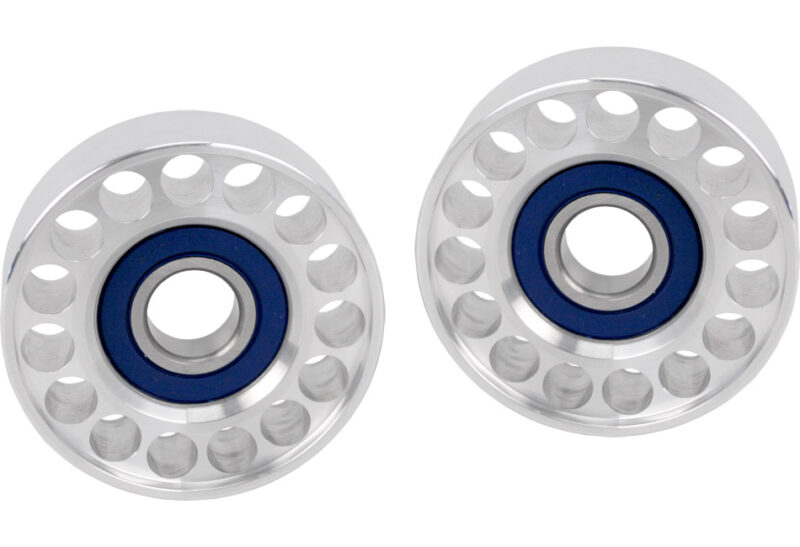 Steeda’s lightweight billet aluminum idler and tensioner pulleys are crafted from 6061 aerospace-grade aluminum and machined to a great-looking finish. Bearings are of OEM specification and double sealed to ensure a long, trouble-free life. These are a perfect dress-up item for the front of your 5.0 engine and match the Steeda Billet Water Pump Pulley ( 555-3367 ).