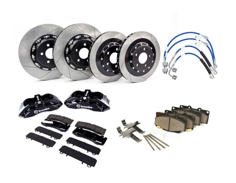 We pair our Steeda S550 big brake kit with a set of Performance Package Brembo 6 piston front brake calipers. These big brake calipers will cover more surface area on your rotor, and be able to apply more force to your new big brake rotors. The larger amount of force being applied across a larger surface area will give you an immense amount of braking power. These Brembo Brake calipers come complete with a set of Stop Tech brake pads.