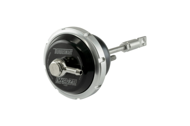 Turbosmart Upgraded Wastegate Actuators have been developed to provide the maximum possible boost response for your factory frame turbocharger. The Turbosmart IWG75 Series of upgraded Actuators benefit from an increased ‘Working Ratio’ over the factory equipment, resulting in improved boost response throughout the RPM range. This improved ‘working ratio’ is achieved through an increase in the effective surface area of the diaphragm and revisions to the actual springs fitted, resulting in greater leverage of the forces the actuator is working against (boost and backpressure) while still being super-responsive. Upgrading with the same base pressure as the factory, you can expect a broader boost and torque curve through peak boost achieved earlier in the RPM and holding longer into higher RPM. These improvements can be amplified with higher base pressures, however tuning and recalibration is likely required. FeaturesProprietary Silicon Nomex DiaphragmChoice of Springs from 3psi to 26psi (Optional)High-Grade Billet Aluminum ConstructionStainless Steel Rods and ClevisTurbosmart Unique Locking Collar System