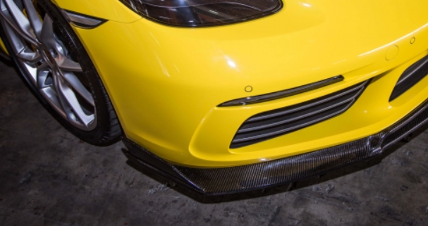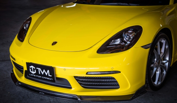 The TWL Carbon Front Lip Spoiler for 718 comes in a carbon fiber construction, with high-gloss finish. Install directly underneath the OEM bumper to provide an aggressive style that is sure to set your Cayman or Boxster apart from the rest.