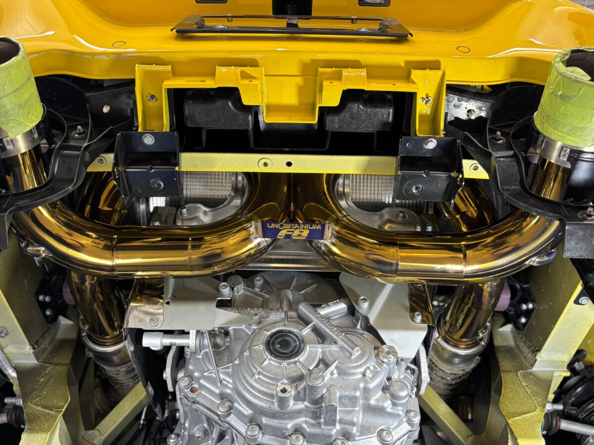 Premium titanium exhaust system for the Ferrari F8 Tributo. Handcrafted from exotic metals for maximum performance and weight savings with an incredible exhaust note.
