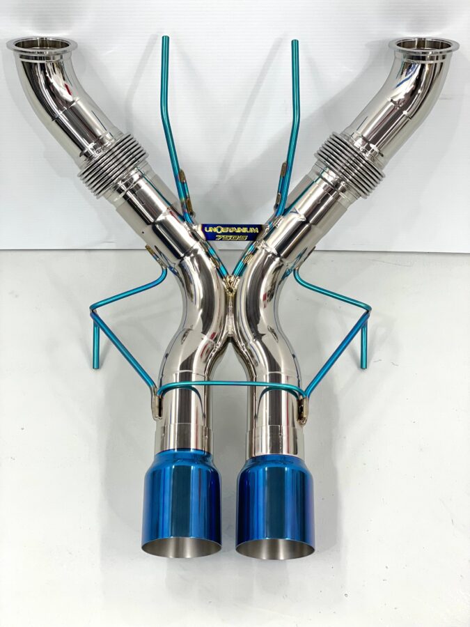 This package offers the ultimate power, performance and style for your supercar. Handcrafted 3.5″ Stainless Downpipes and Titanium X-pipe for unrivalled sound quality and power. Our billet inlet ensures maximum breathing and reliable power.