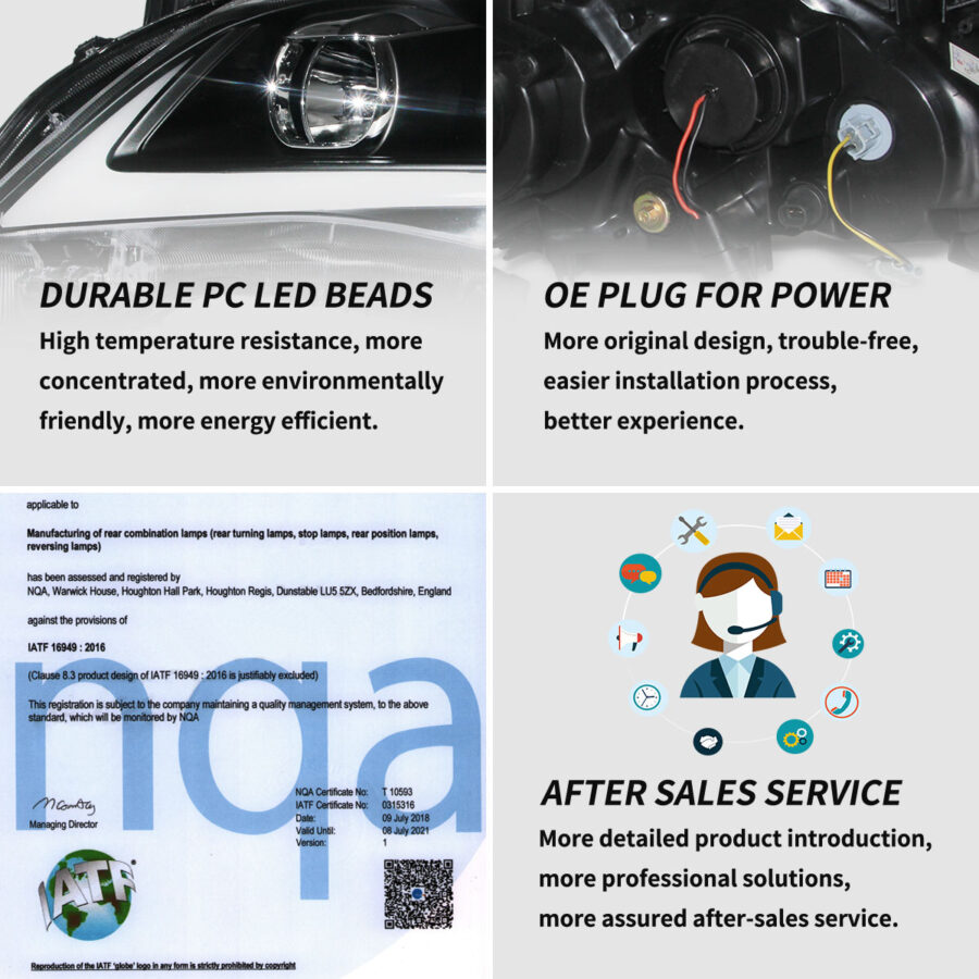 Our factory has American DOT, European E-Mark and Chinese CCC certification to assure product quality. In terms of appearance, we have the appearance and design patents of our car lights. As for production capacity, our factory has IATF 16949 auto parts production management system and ISO 9001 quality management system certification standards.