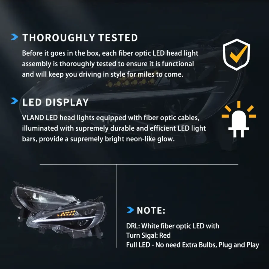 Vland 2012–2021 Toyota 86/GT86, Subaru Brz, Scion Frs Headlights Upgrade Full LED Dual Beam Projector
