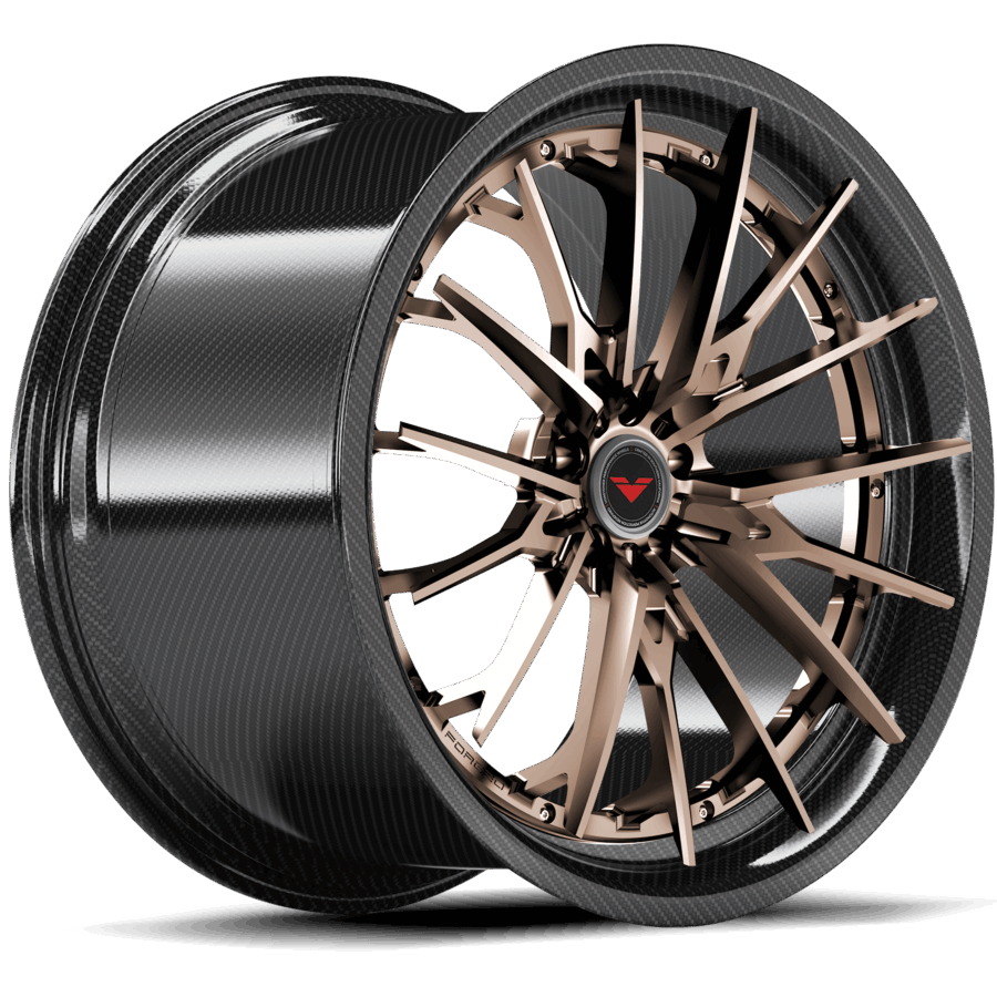 Vorsteiner Wheels produces each and every bespoke forged wheels at our in-house California facility to ensure the quality standards and delivery times meet our clients expectations. All of our multi-piece forged wheels utilize California sourced T6-6061 aerospace & medical grade aluminum that is TUV rated for safety. We engineer lab test and FEA all of our wheels to maximize performance while minimizing weight specific to target vehicle application without using a universal load rating. Each VMP wheel comes with a standard solid finish. You can also add brushed or polished textures with various finishes and sheens. The VMP 200 Series comes with a DYMAG carbon fiber barrel and customizable face. What are the advantages of a Dymag Carbon Fiber Barrel? Ultra low moment of inertia 40% lighter than cast aluminum